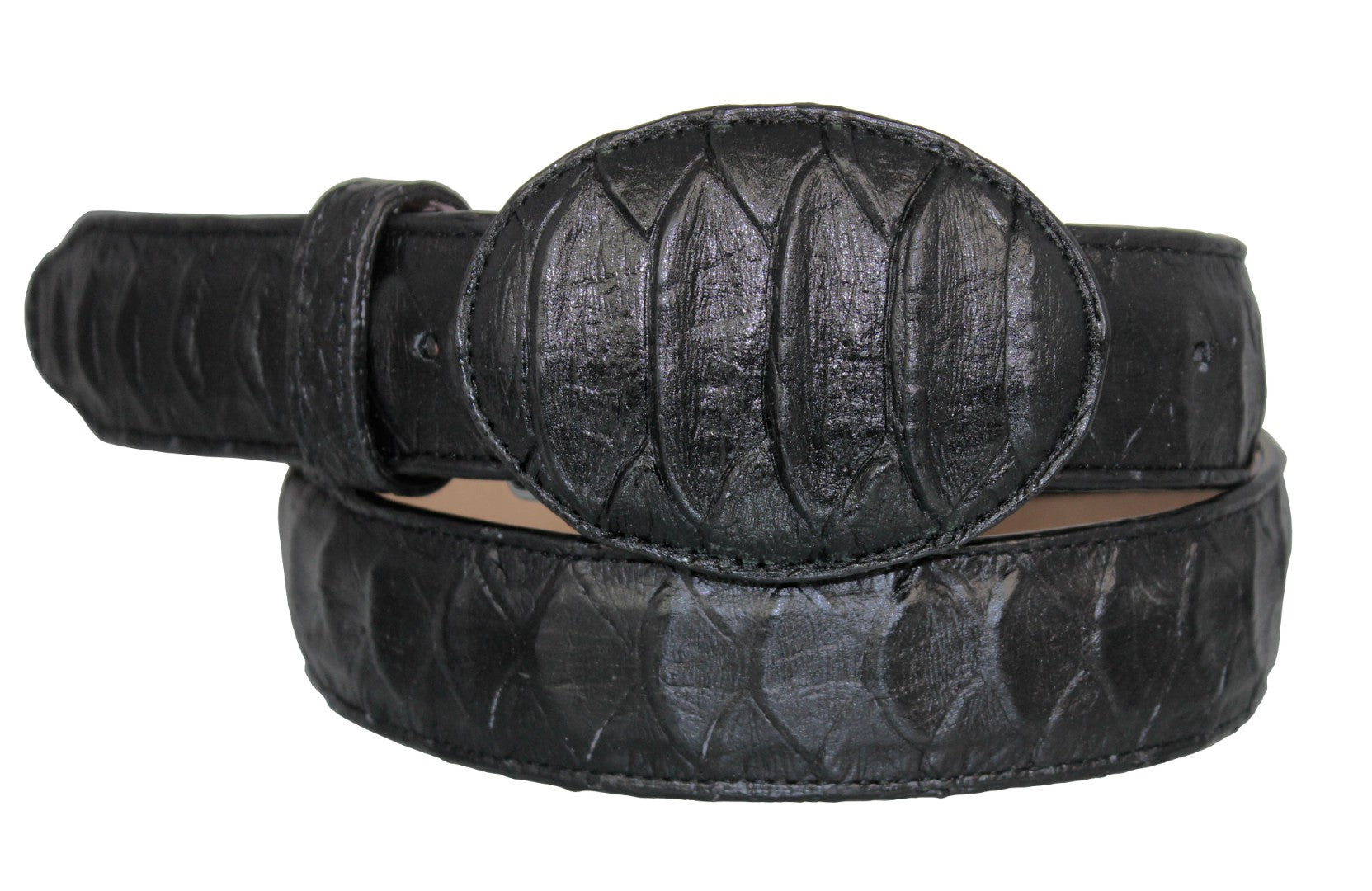 Black #180A Western Belt Snake Print Leather - Removable Buckle