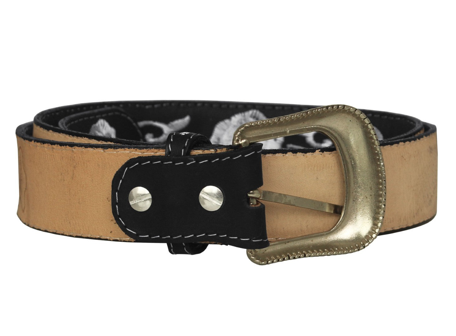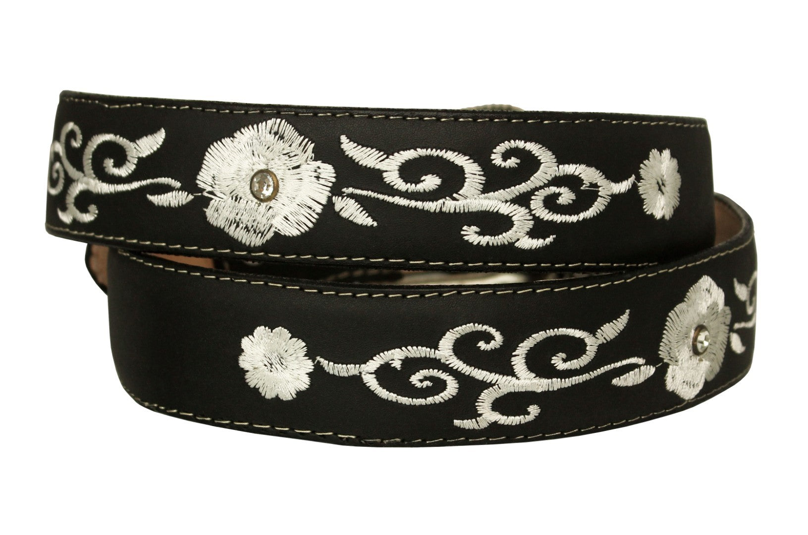 Black #820 Western Cowboy Belt Floral Leather - Removable Buckle