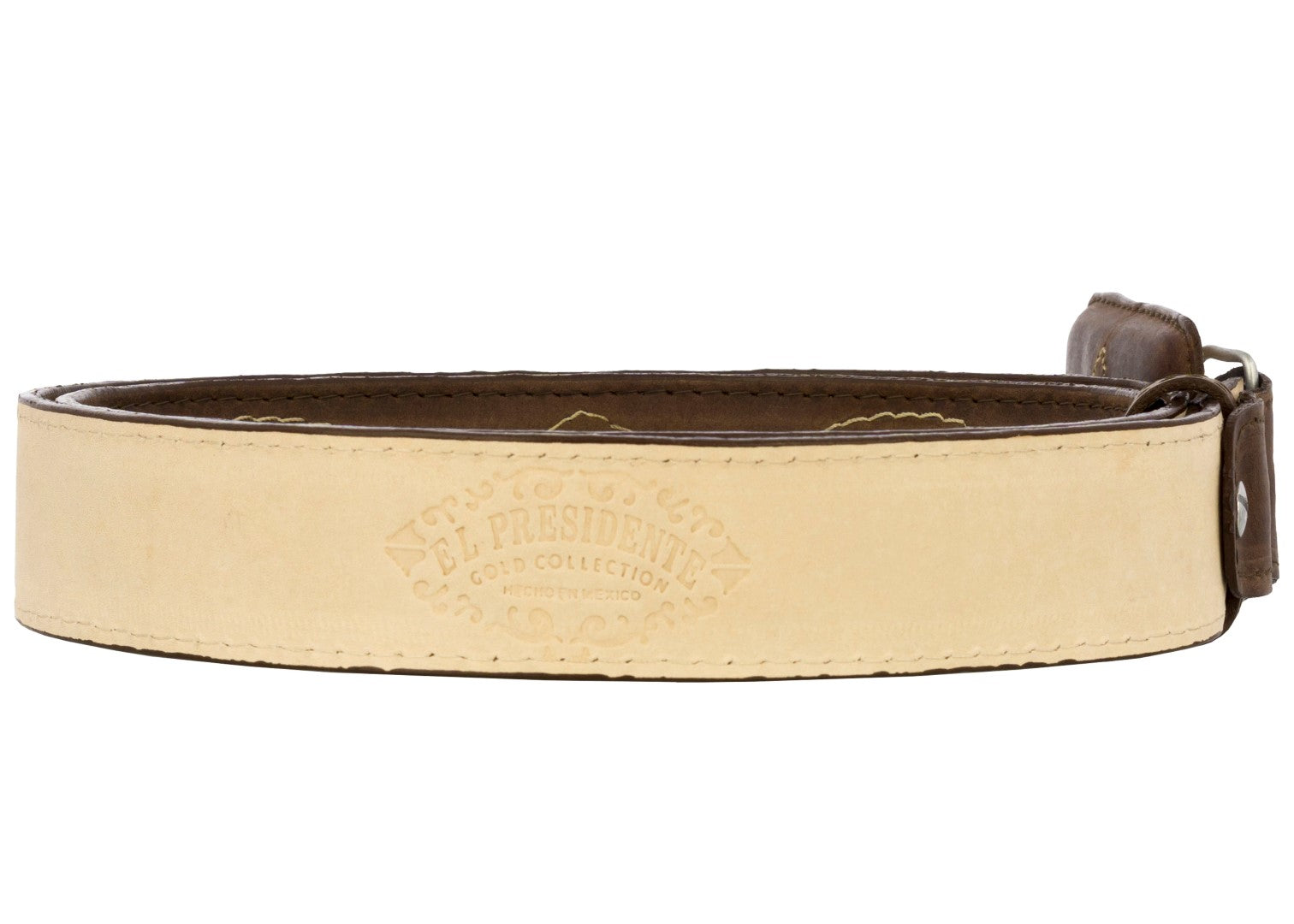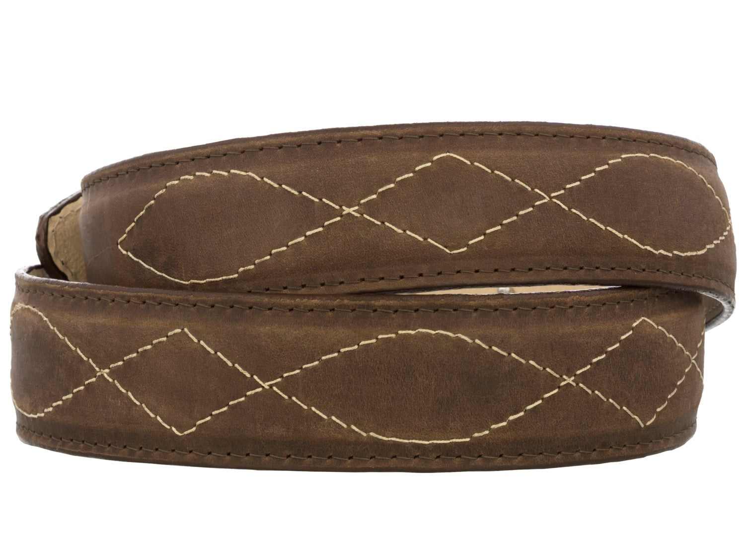 Brown Western Cowboy Leather Belt Classic Embroidery - Rodeo Buckle