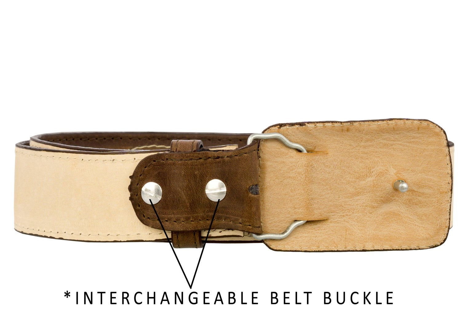 • Description: A great accessory for your boots or shoes. This belt comes with a removable buckle. Simply remove the 2 screws add your buckle and fasten the screws.