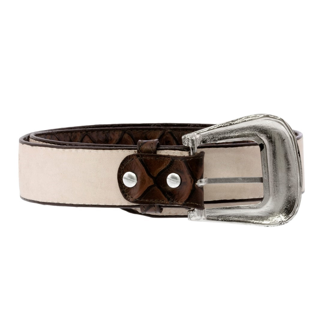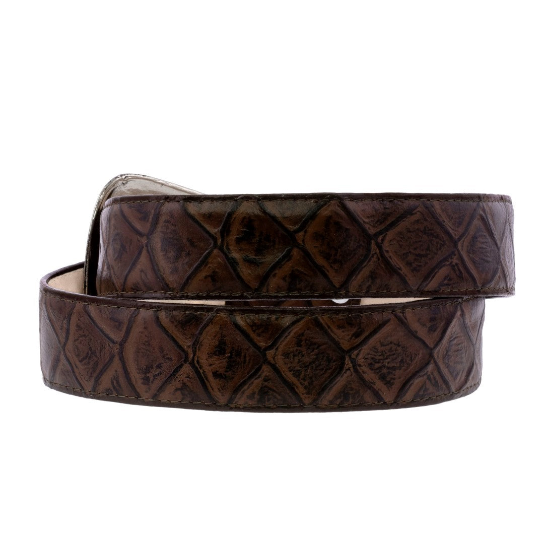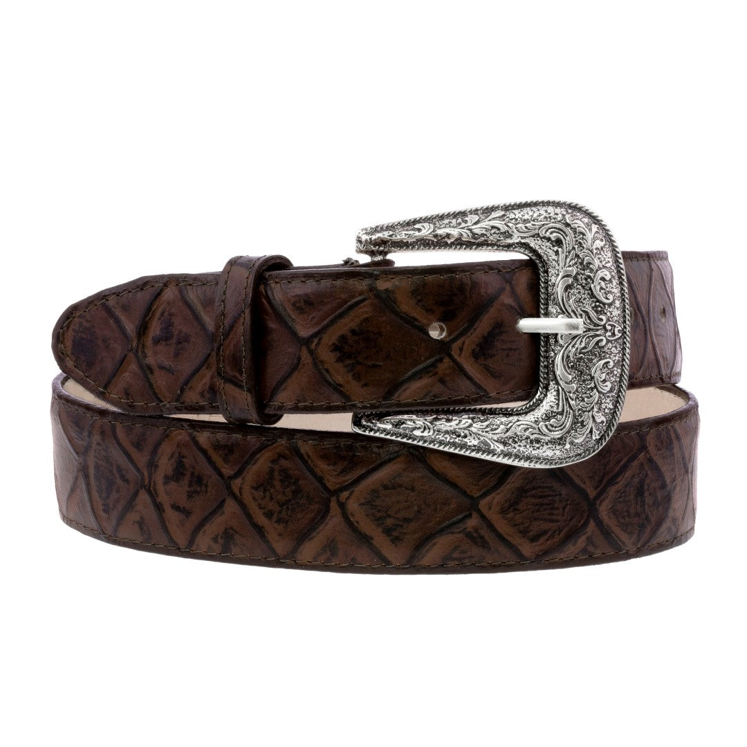 Brown Western Cowboy Belt Pirarucu Fish Leather - Silver Buckle