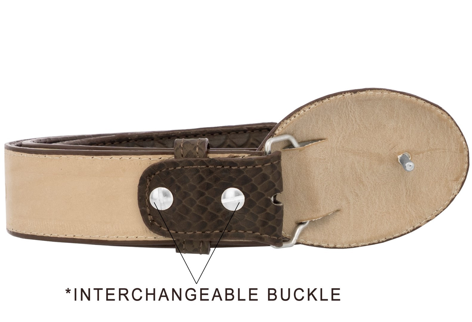 Brown Western Cowboy Belt Snake Print Leather - Rodeo Buckle