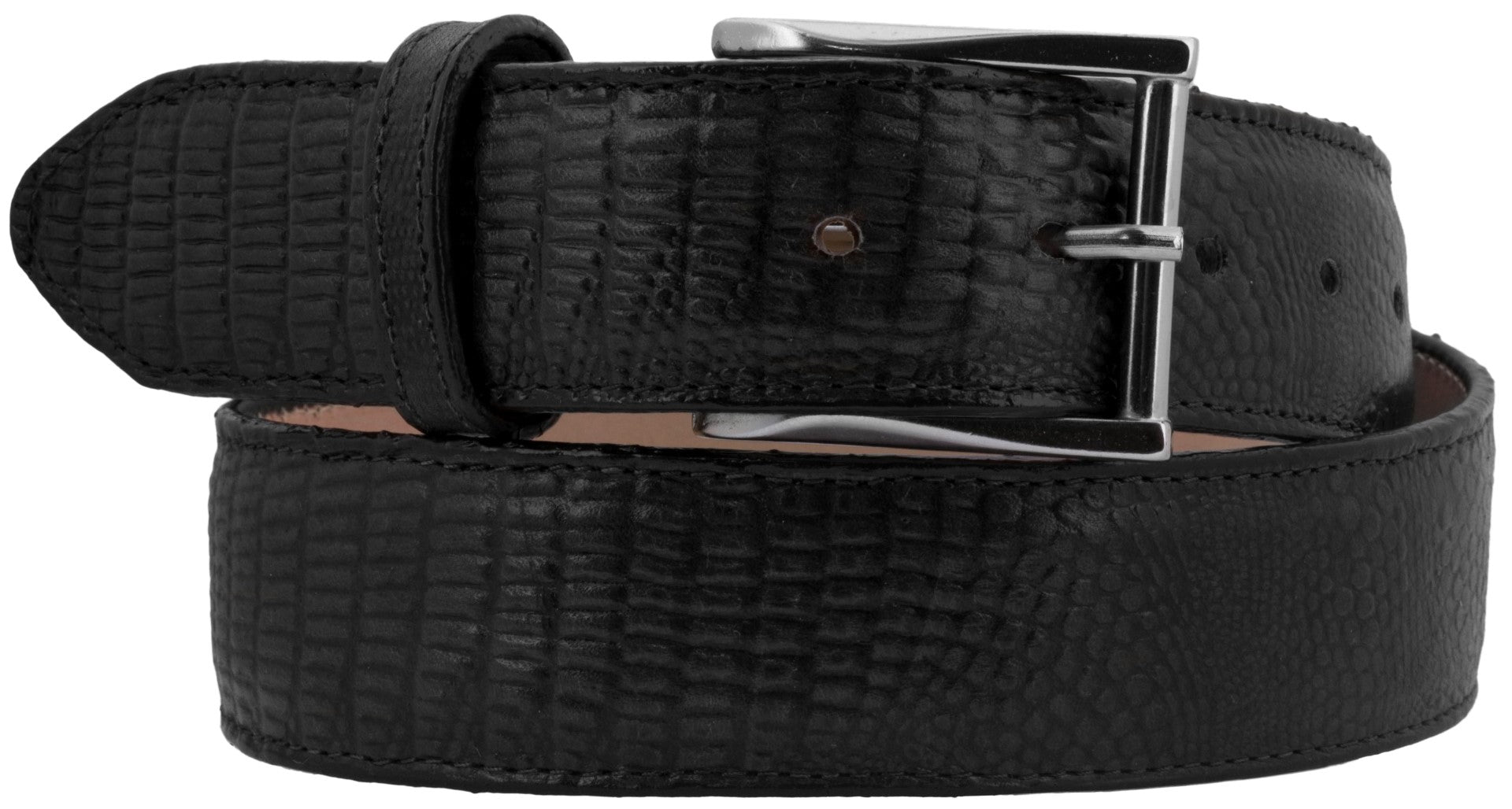 Black Western Cowboy Belt Teju Lizard Print Leather - Silver Buckle