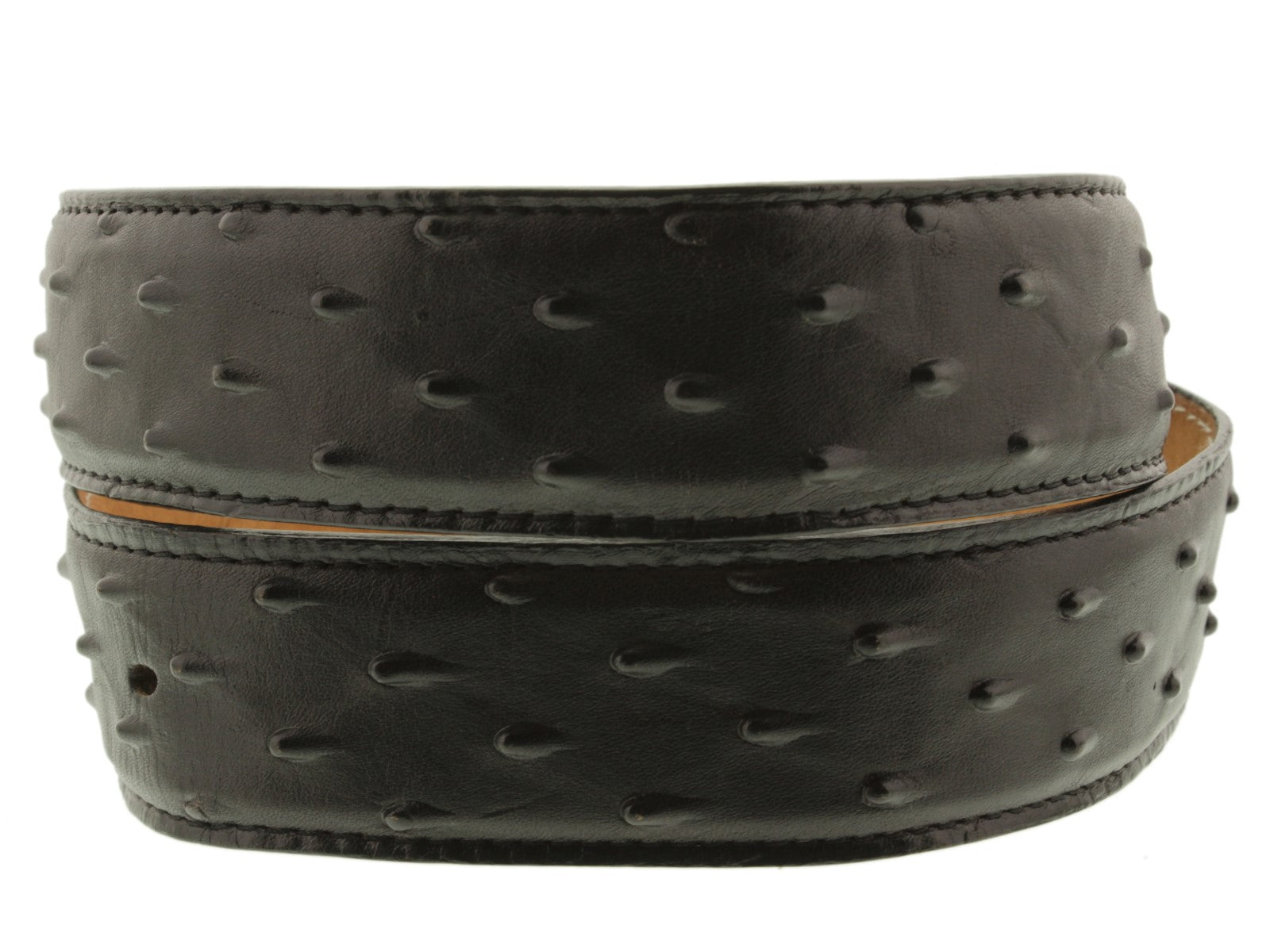 Black Western Cowboy Belt Ostrich Quill Print Leather - Silver Buckle