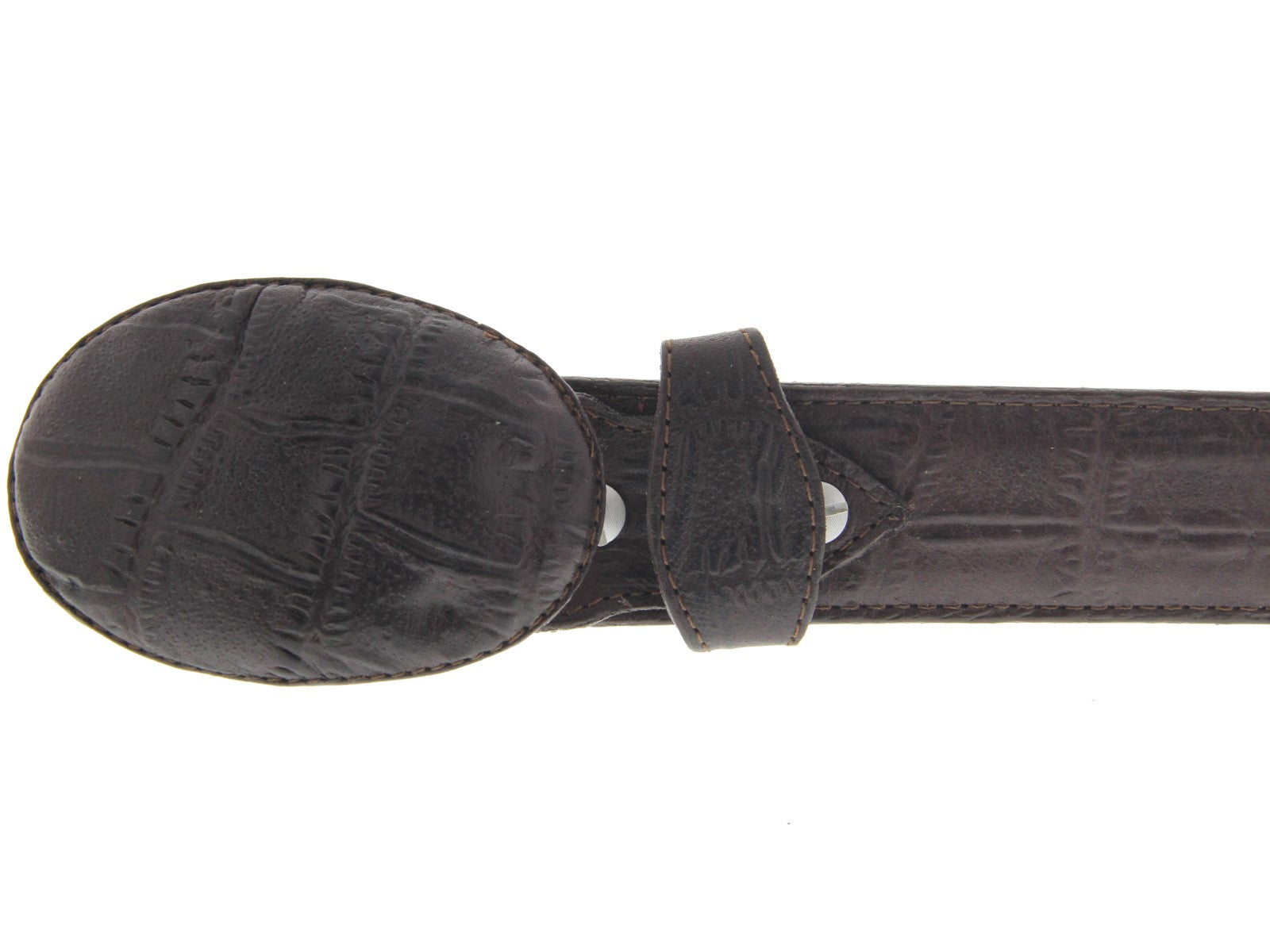 Mens Brown Alligator Big Belly Print Leather Belt - Round Buckle
