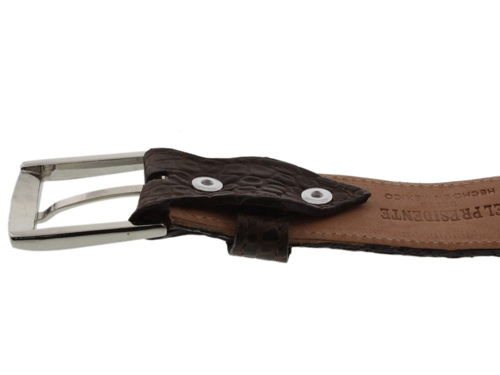 - Description: El Presidente's handmade genuine leather belt has become a true essential to every man's wardrobe over the years. This belt features a stylish pattern; a perfect match for any man seeking a luxurious style belt. Handmade in Leon Mexico. You can pair this belt with fine leather Oxfords Shoes, Chelsea Boots, and Western Cowboy Boots. Purchase a durable and versatile belt. Our belts features a removable buckle for your own customization. Simply remove the 2 screws add your buckle and then fasten the buckle.