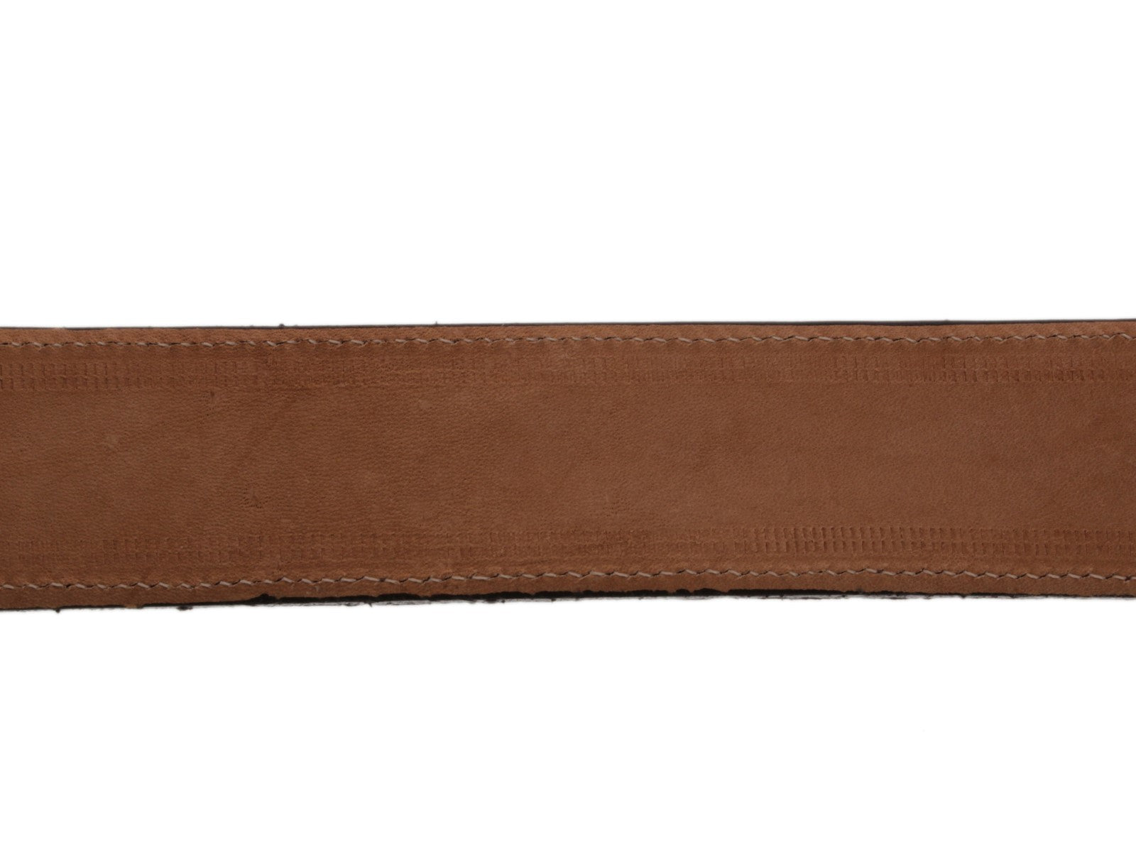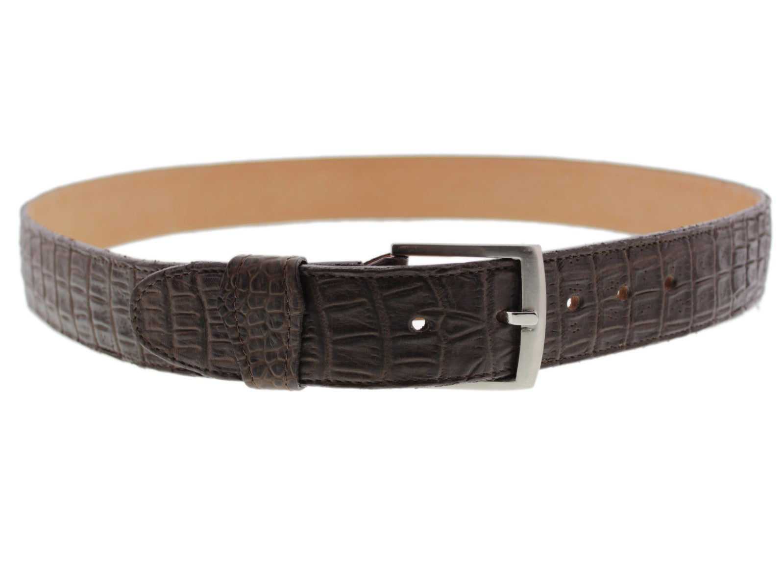 Mens Brown Crocodile Belly Print Leather Cowboy Belt Silver Buckle - #120
