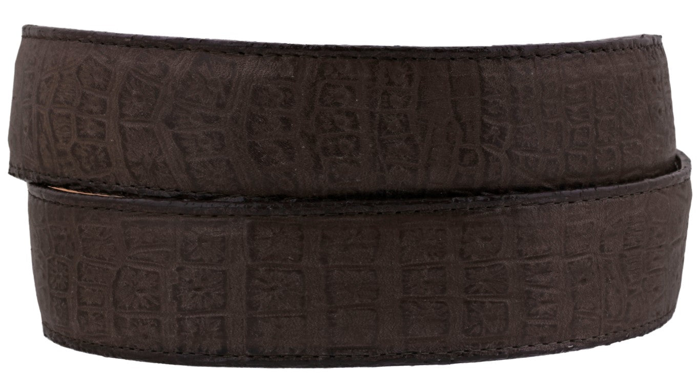 Men's Brown Crocodile Belly Print Genuine Leather Belt Round Buckle