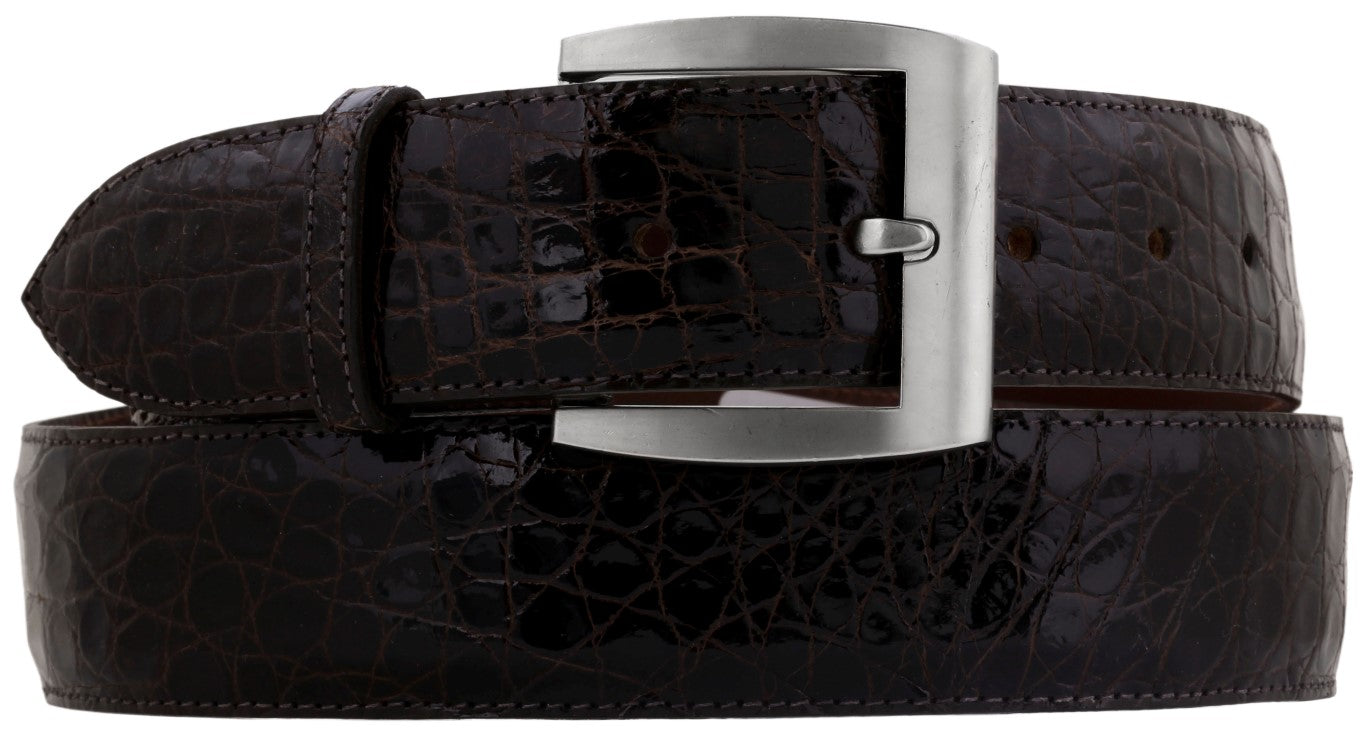 Men's Black Genuine Crocodile Belly Smooth Leather Belt Silver Buckle