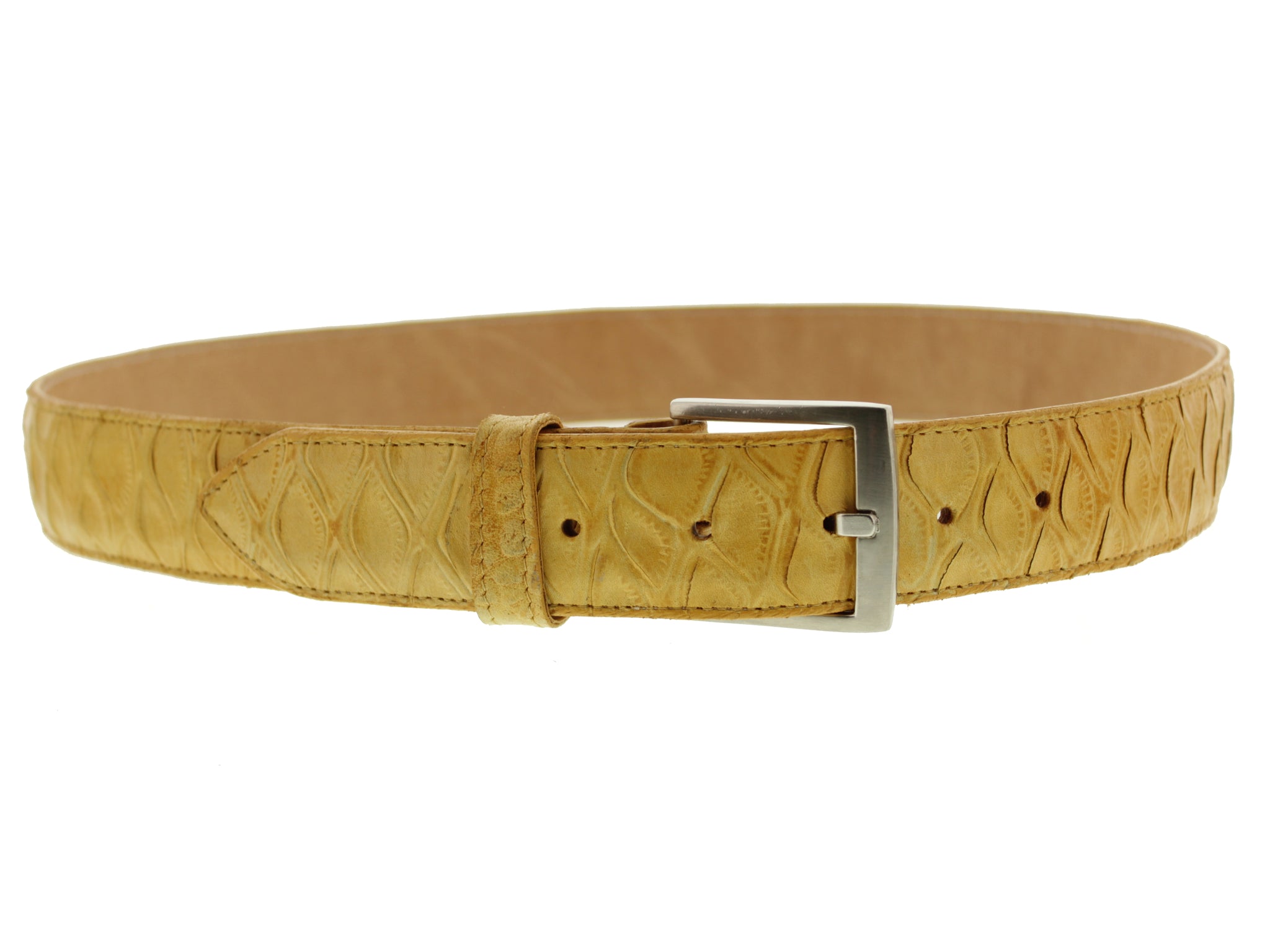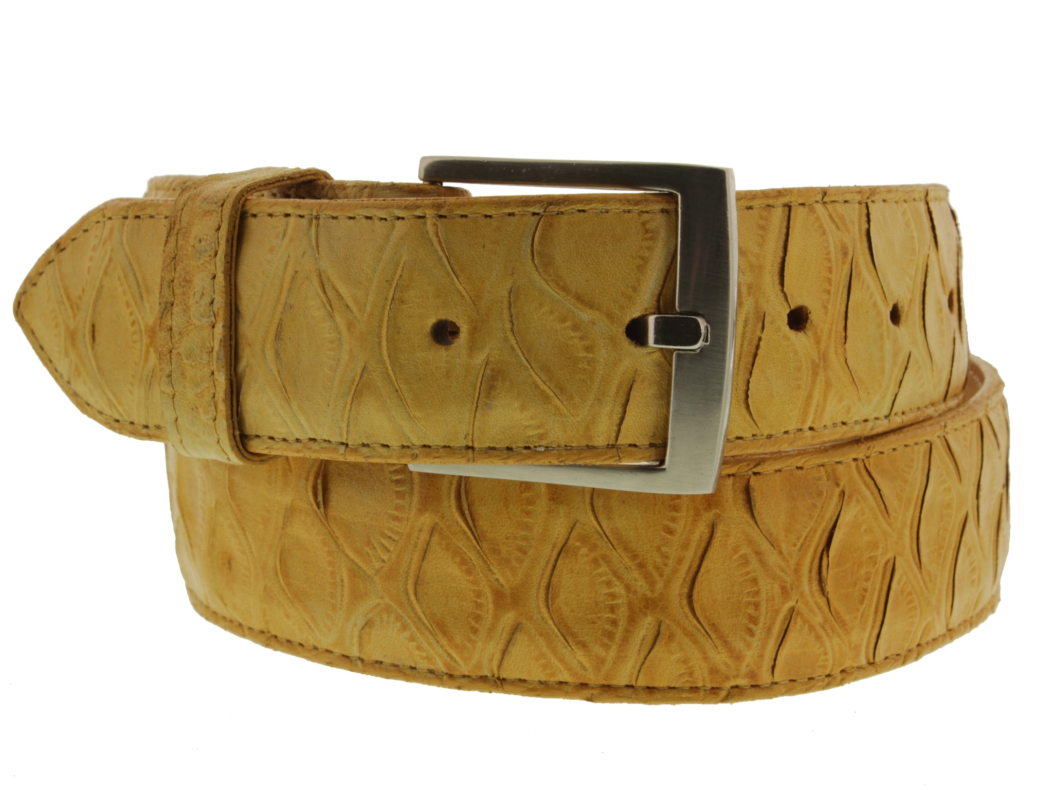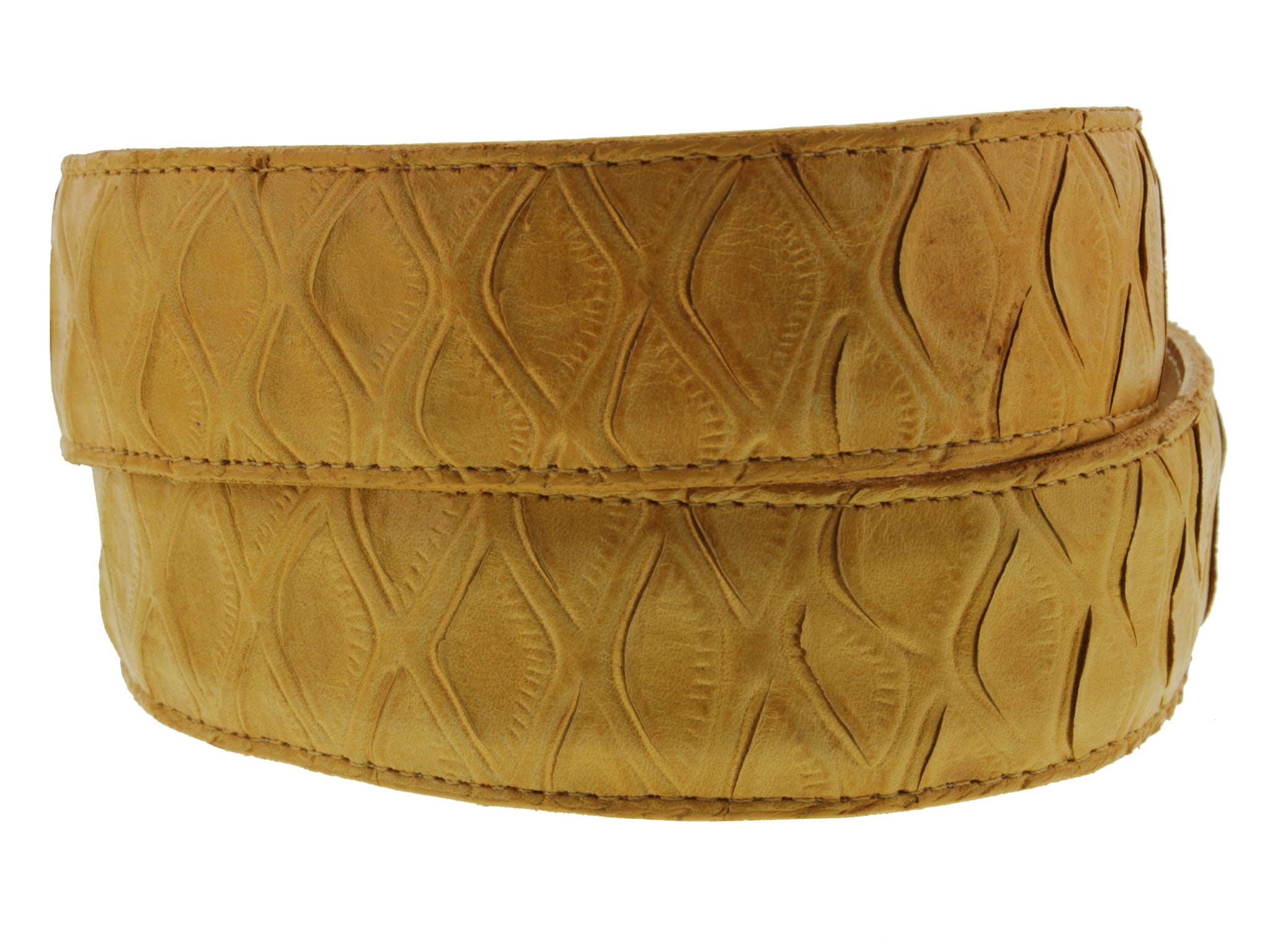 • Description: El Presidente's handmade genuine leather belt has become a true essential to every man's wardrobe over the years. This belt features a stylish pattern; a perfect match for any man seeking a luxurious style belt. Handmade in Leon Mexico. You can pair this belt with fine leather Oxfords Shoes, Chelsea Boots, and Western Cowboy Boots. Purchase a durable and versatile belt. Our belts features a removable buckle for your own customization. Simply remove the 2 screws add your buckle and then fasten the buckle.