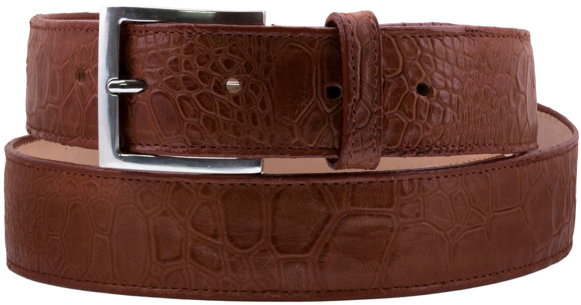Men's Cognac Sea Turtle Belly Print Genuine Leather Cowboy Belt Silver Buckle