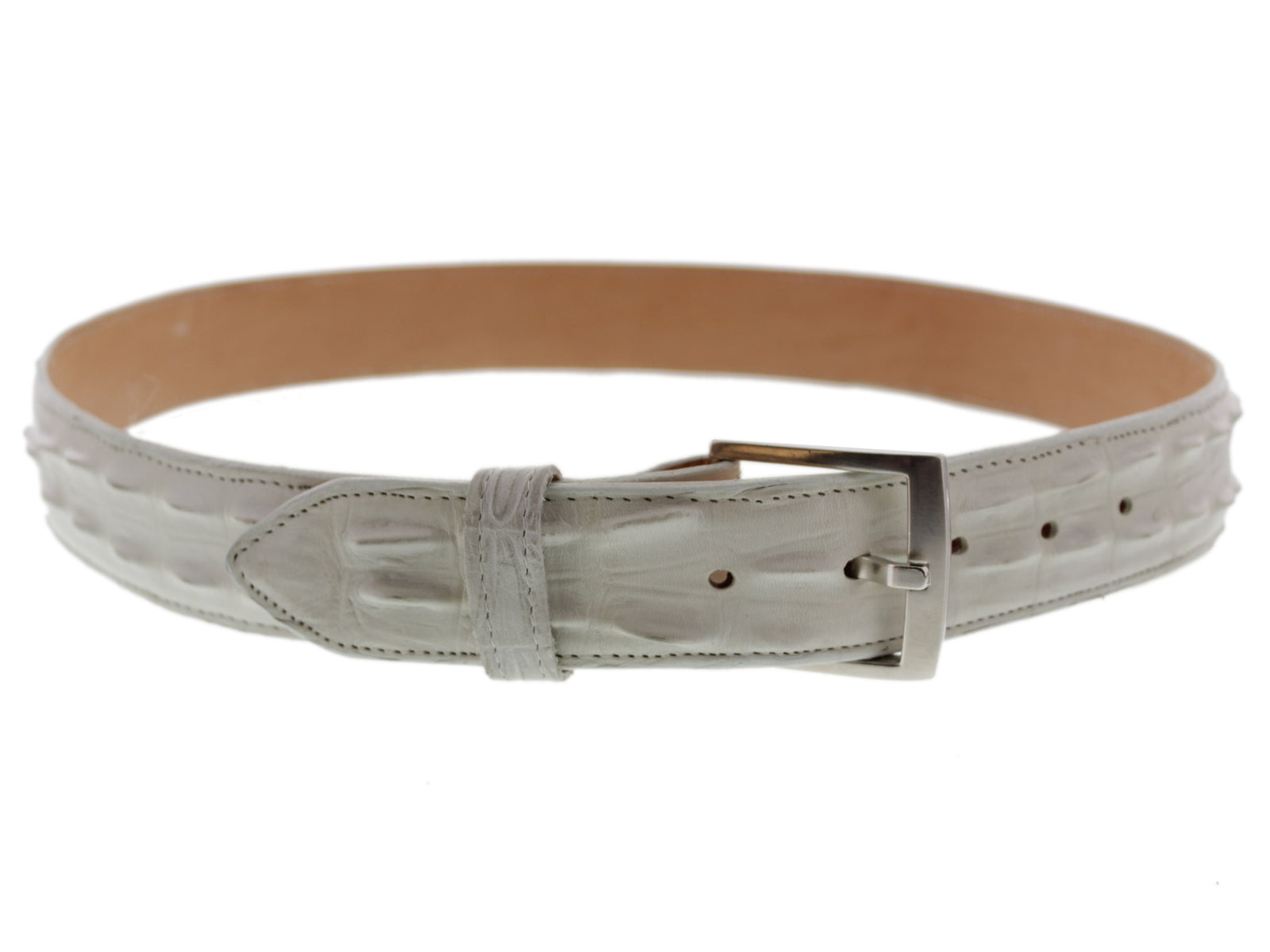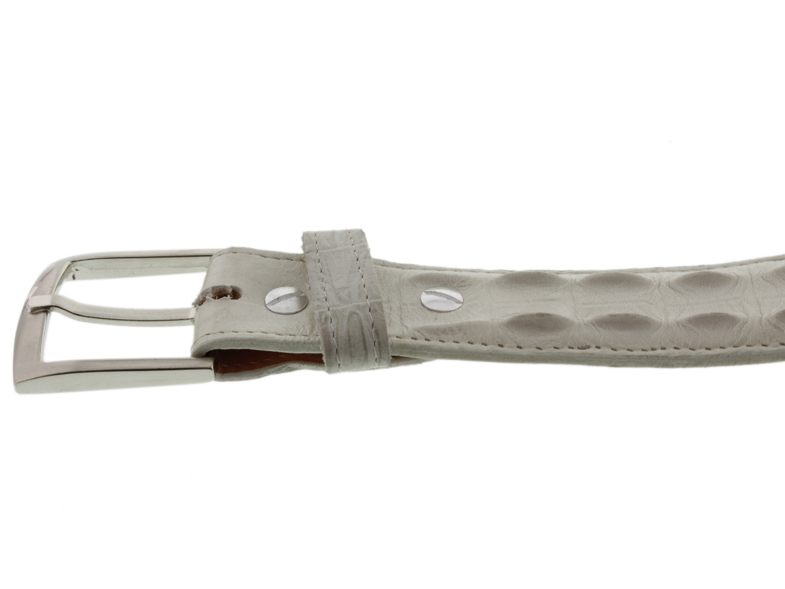 Off White Western Belt Crocodile Tail Print Leather - Silver Buckle