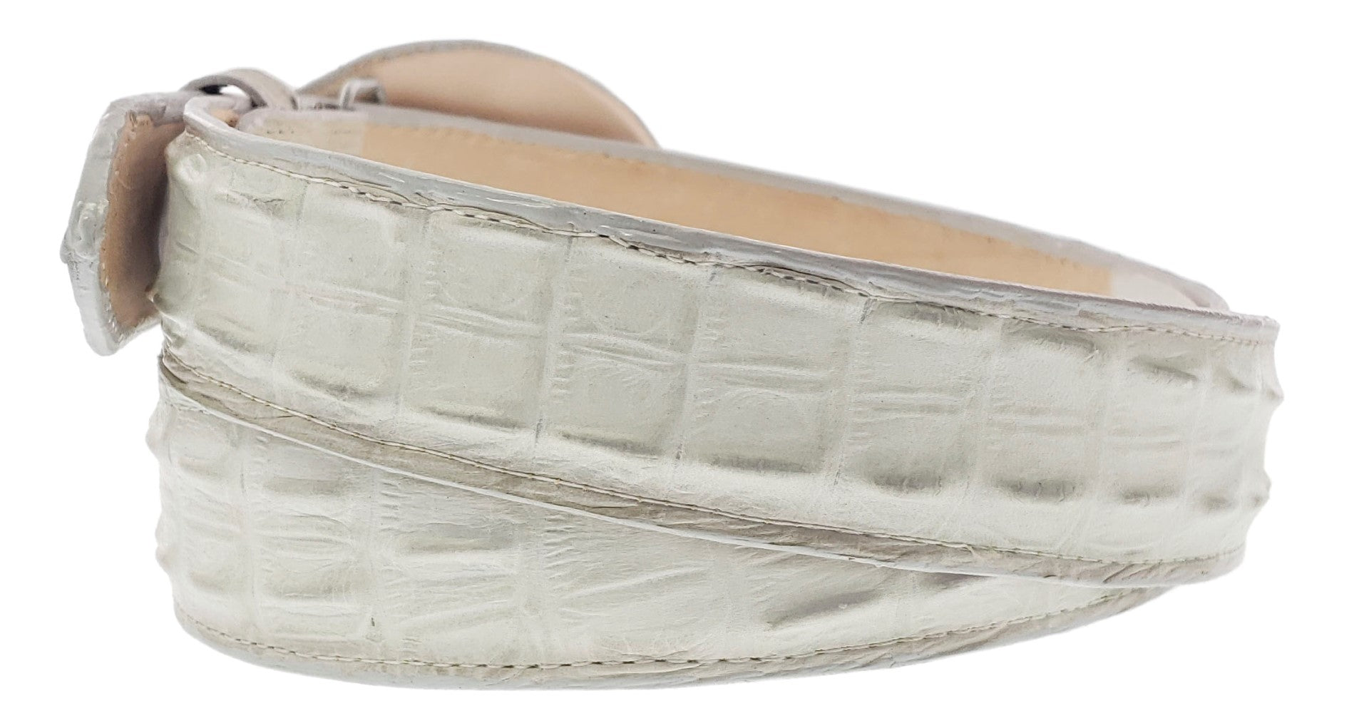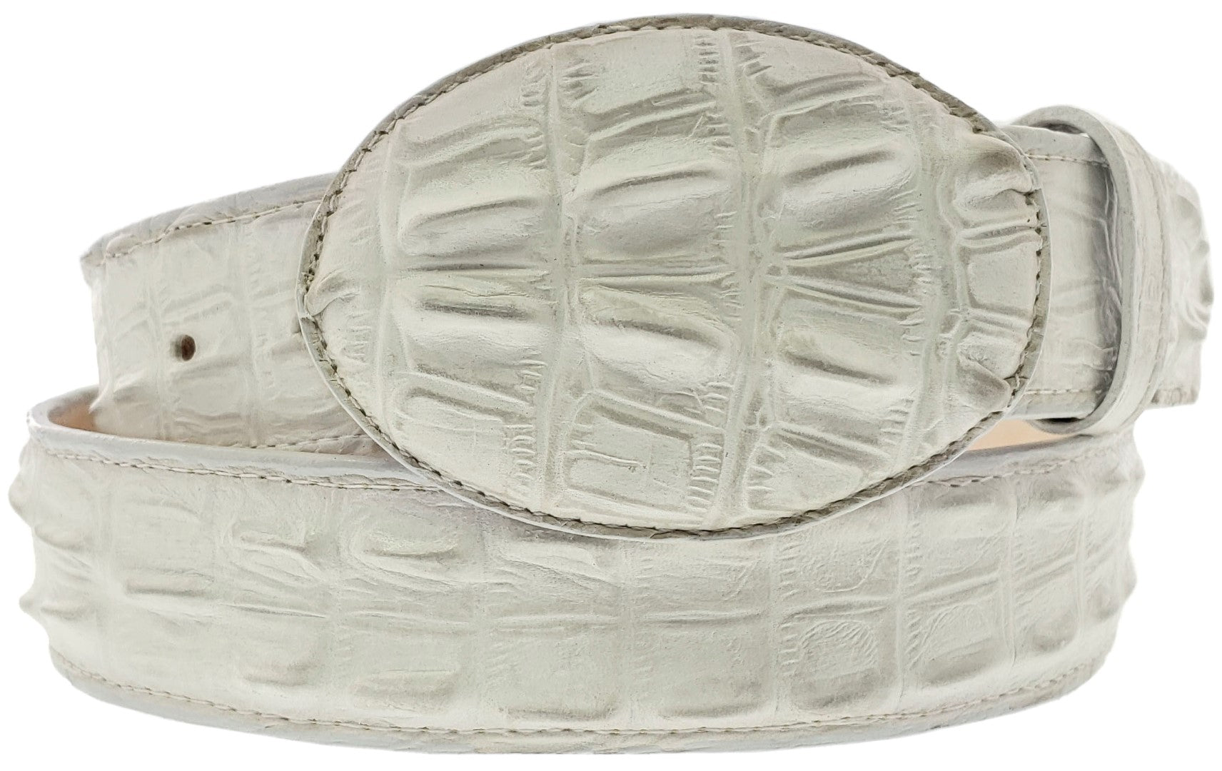 Off White Western Belt Crocodile Tail Print Leather - Rodeo Buckle