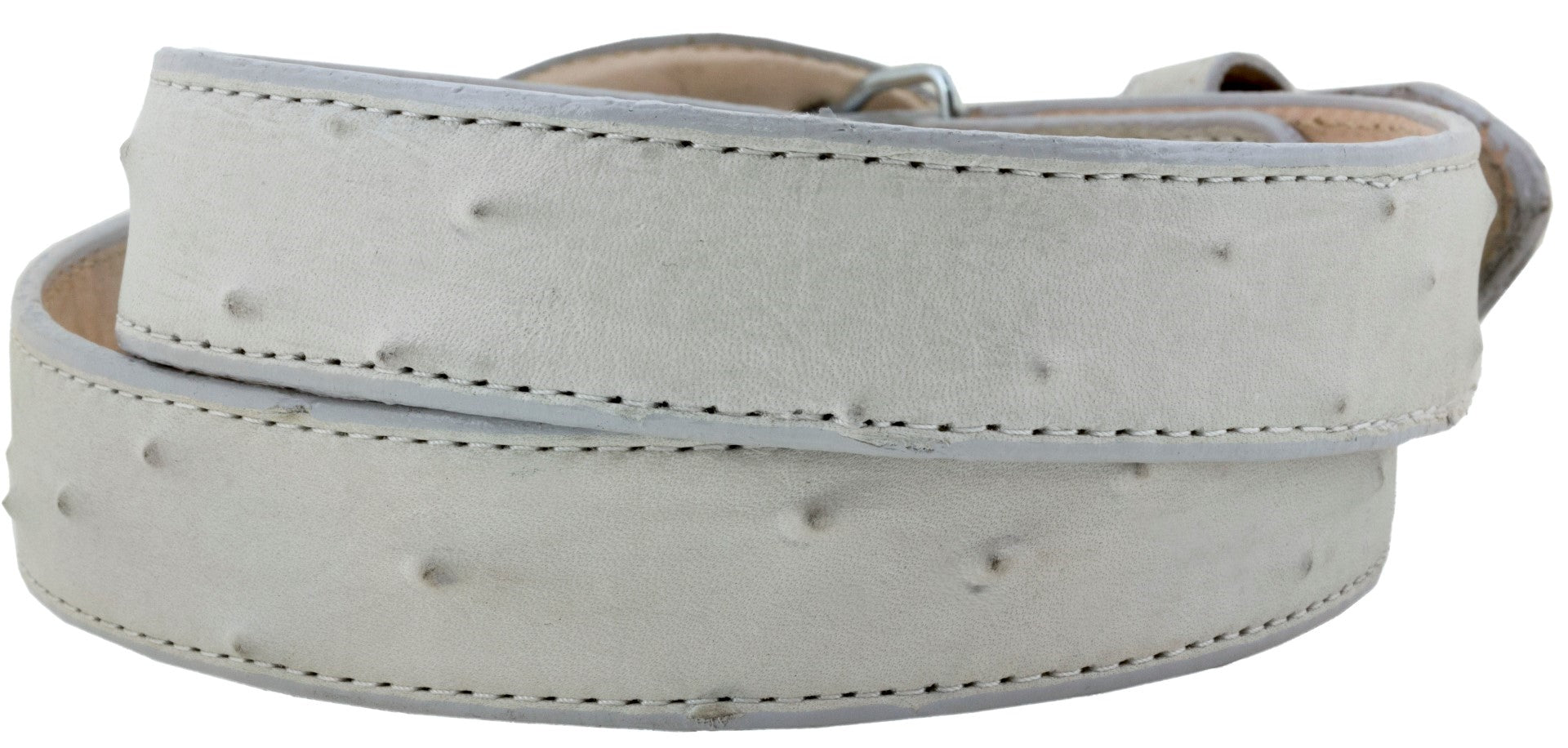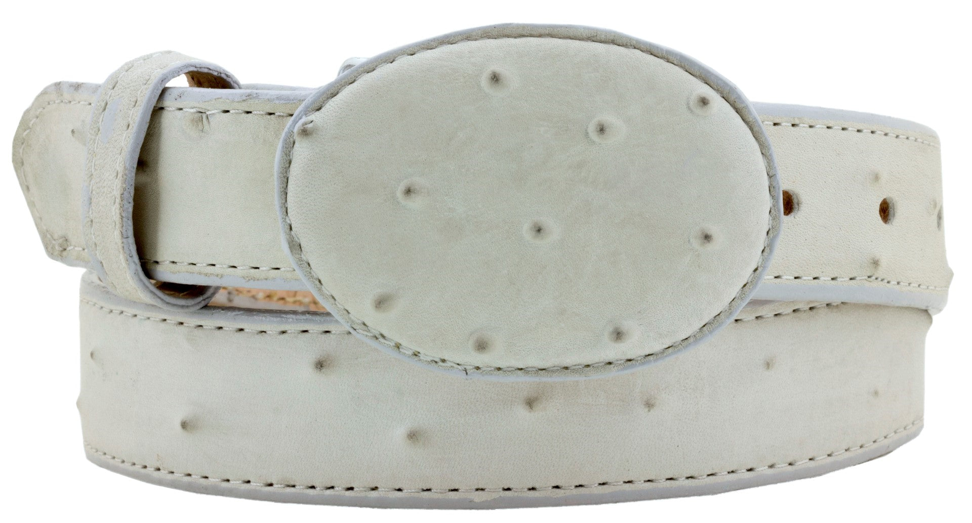 Off White Western Cowboy Belt Ostrich Quill Print Leather - Rodeo Buckle