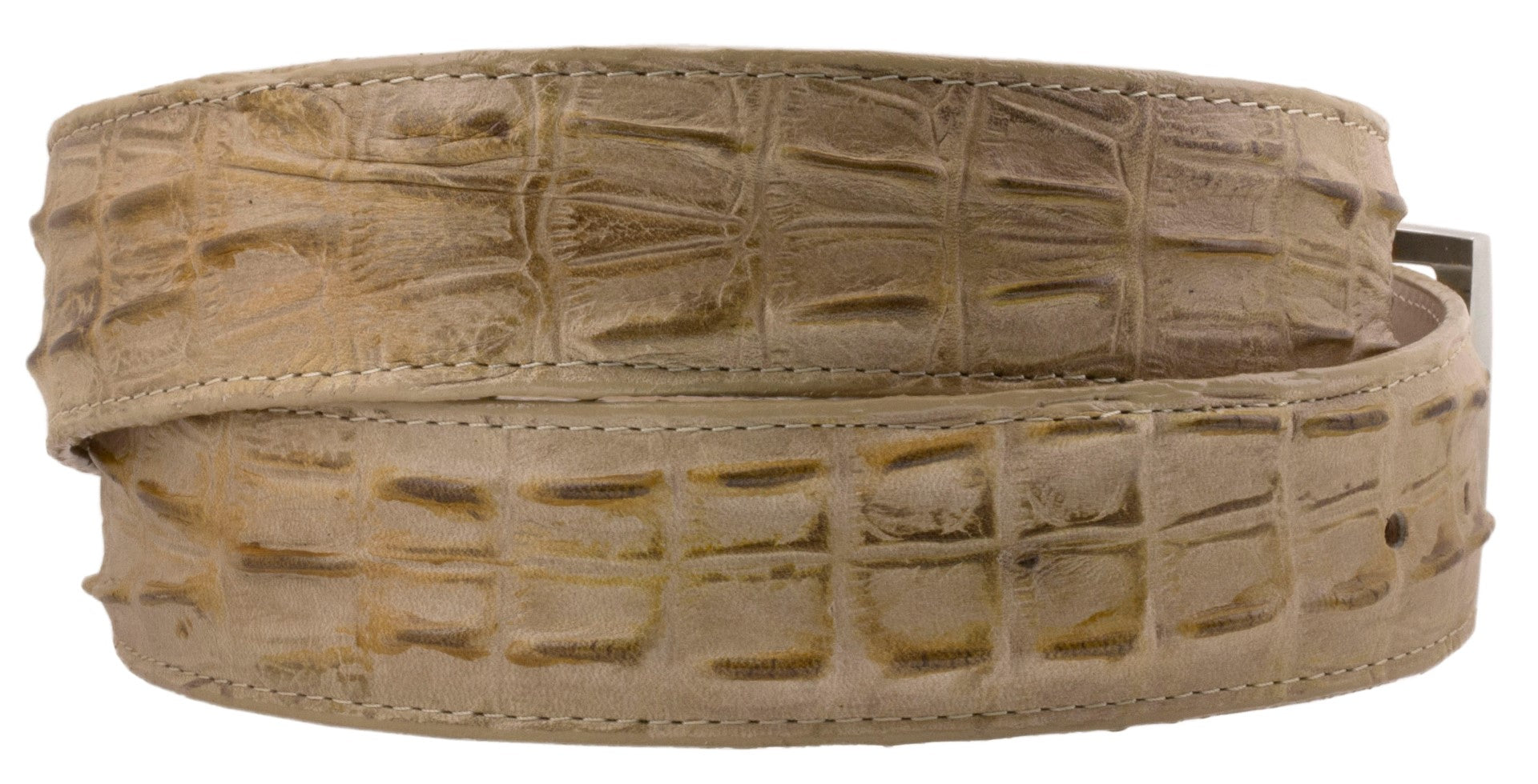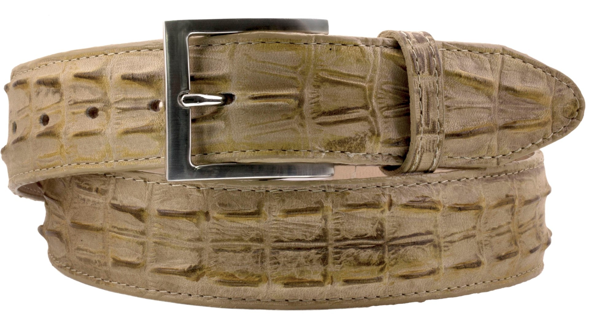 Rustic Sand Belt Crocodile Tail Print Leather - Silver Buckle