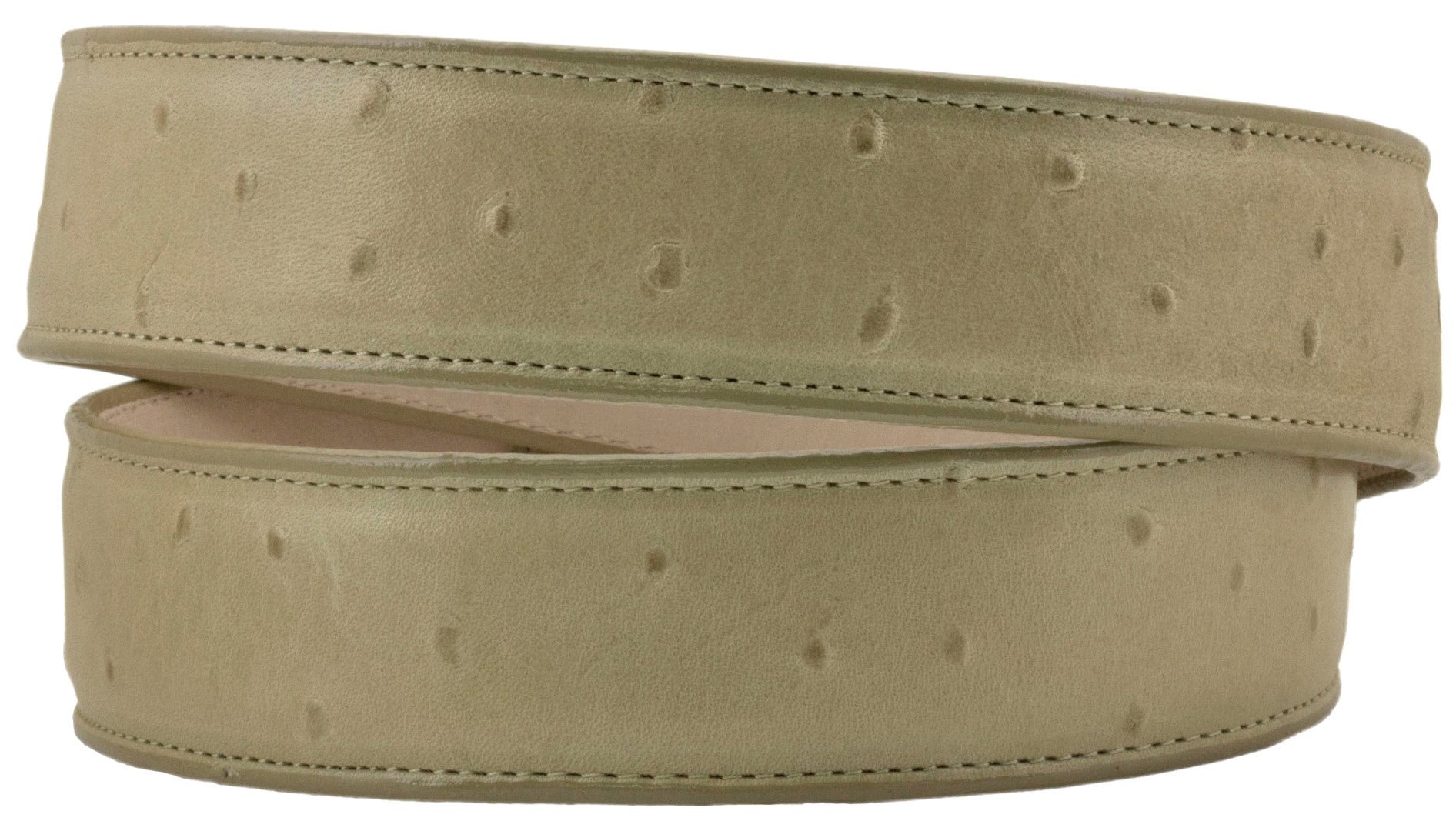 Mens Black Ostrich Quill Print Leather Belt - Removable Buckle