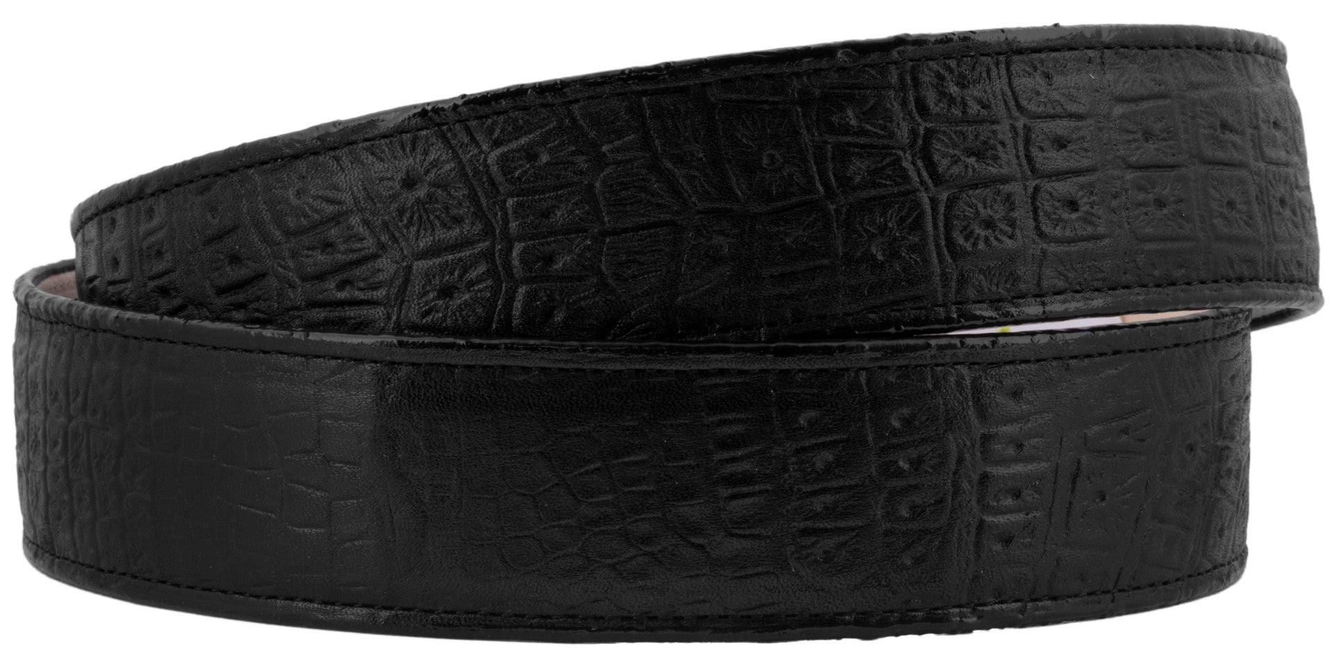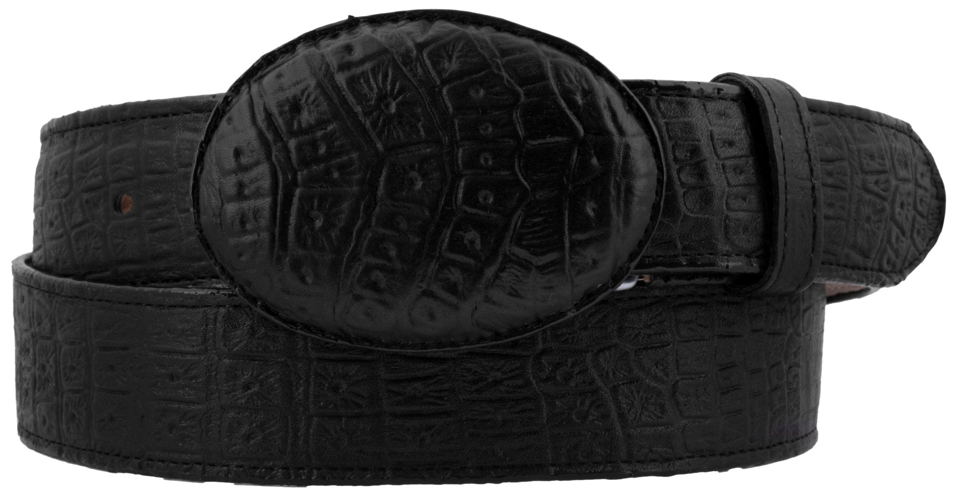 Men's Black Crocodile Belly Print Genuine Leather Belt Round Buckle