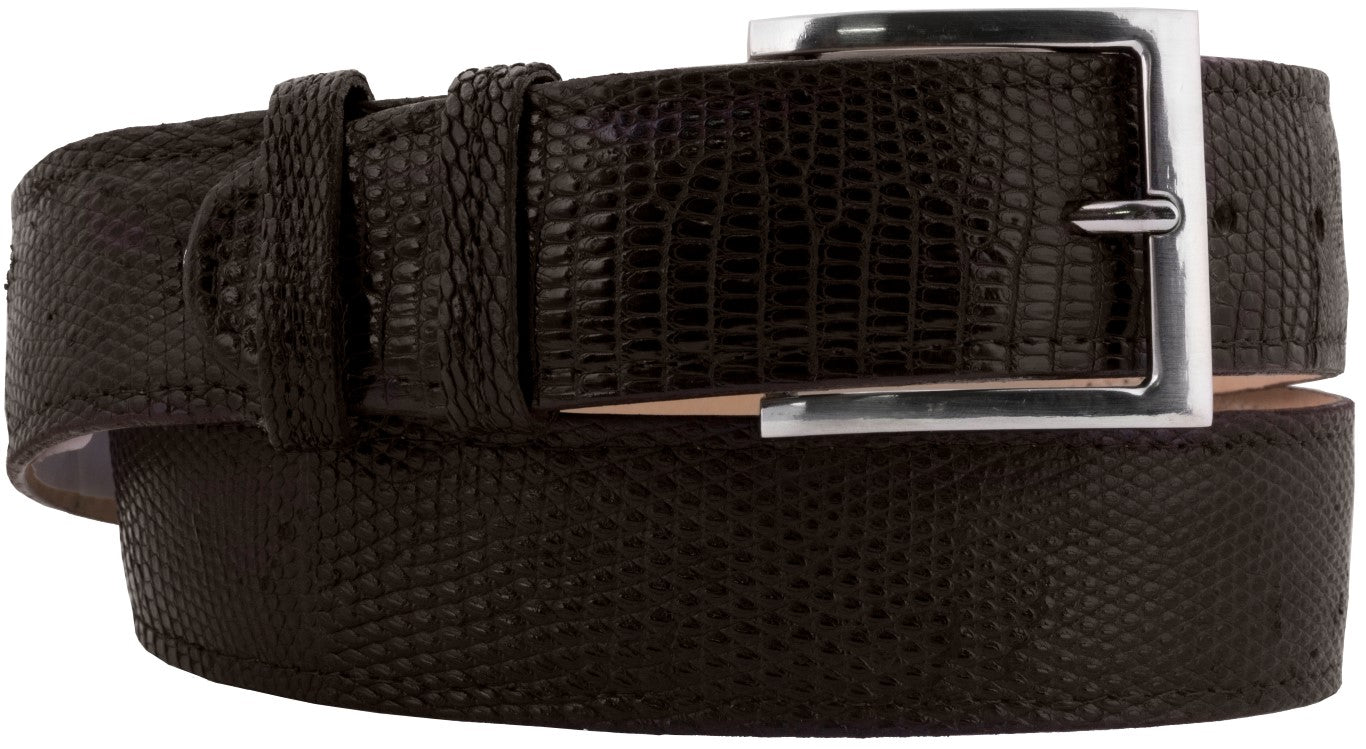 Brown Western Cowboy Belt Real Teju Lizard Skin Leather - Silver Buckle
