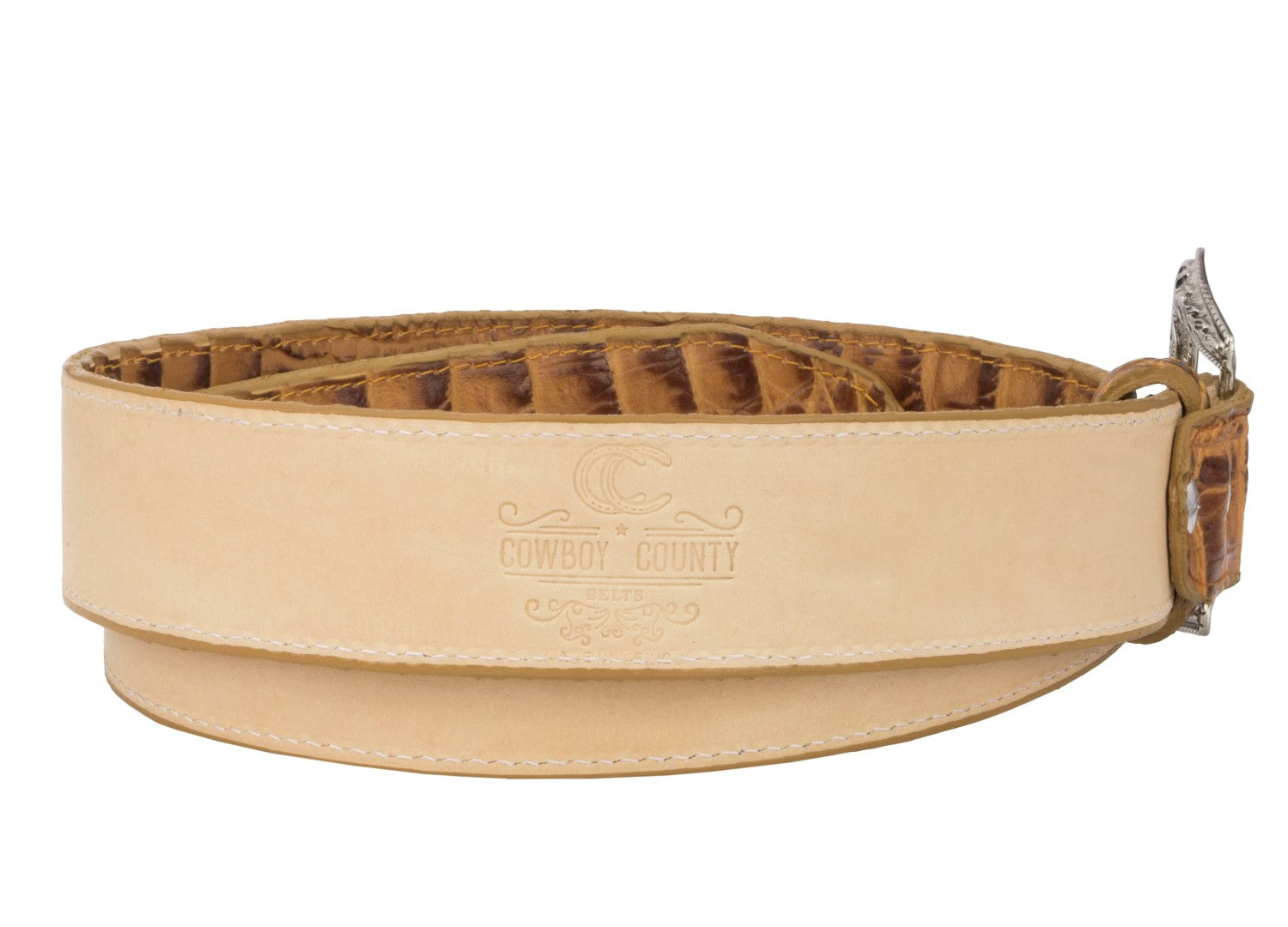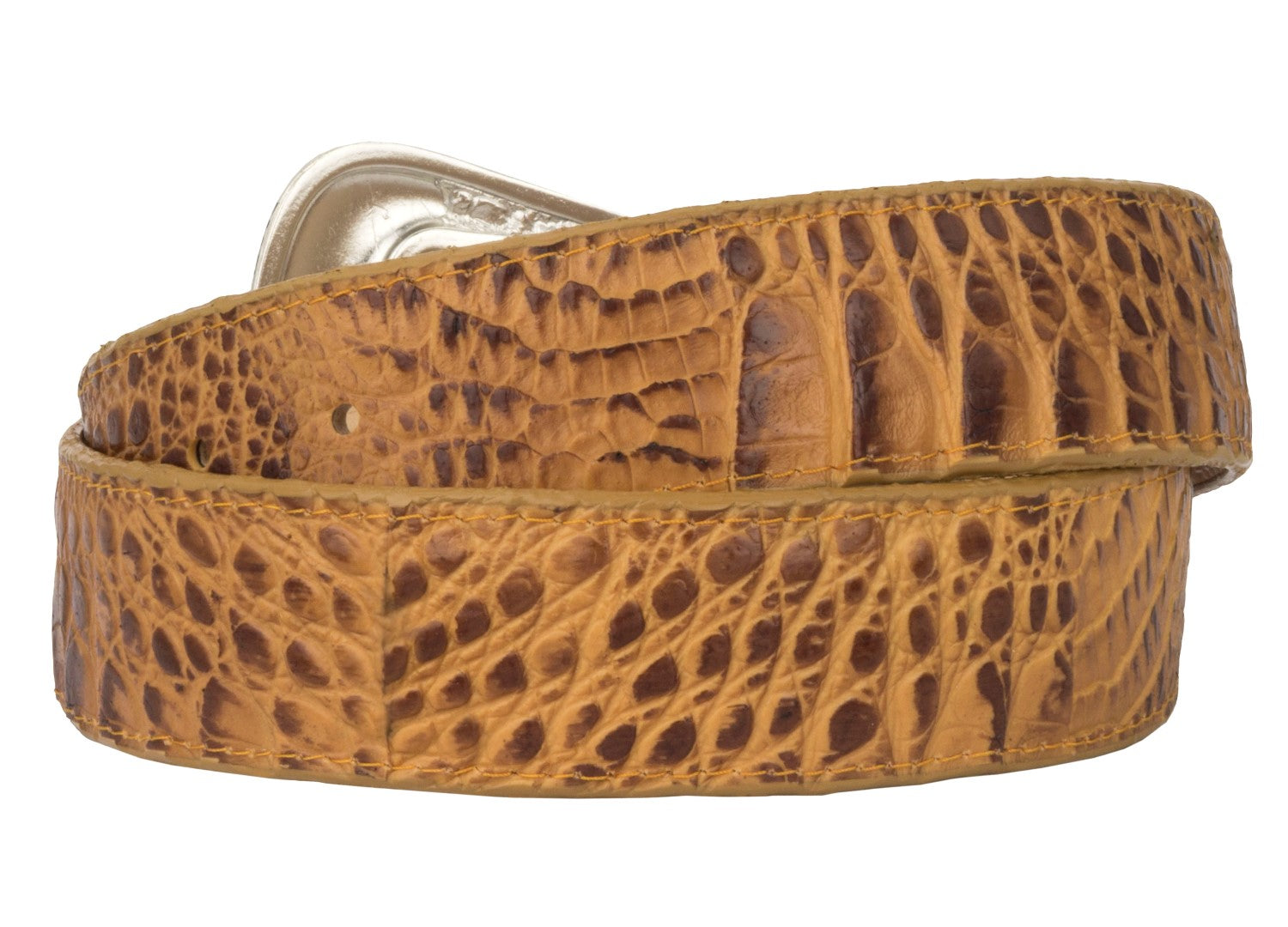 Mens Crocodile Alligator Pattern Leather Western Dress Cowboy Belt Cognac
