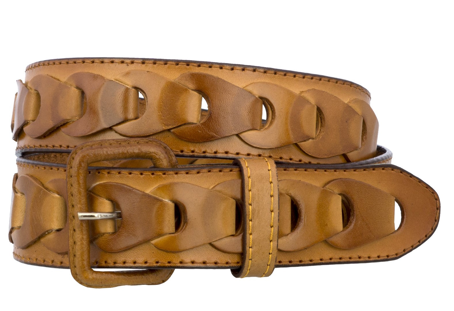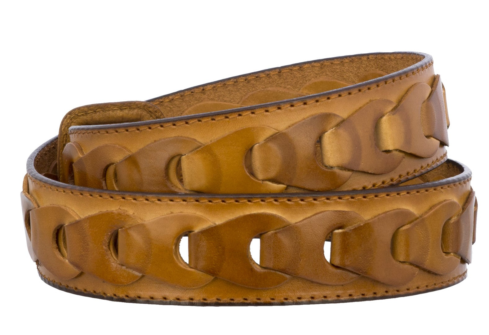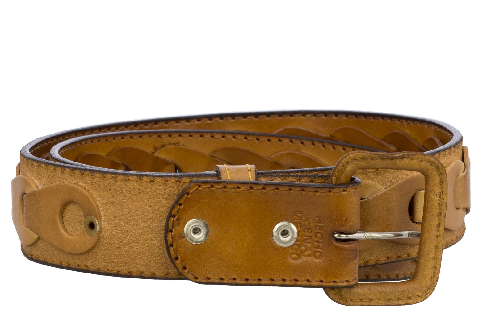 Mens Braided Real Leather Cowboy Jean Belt Removable Buckle Western Dress Cognac