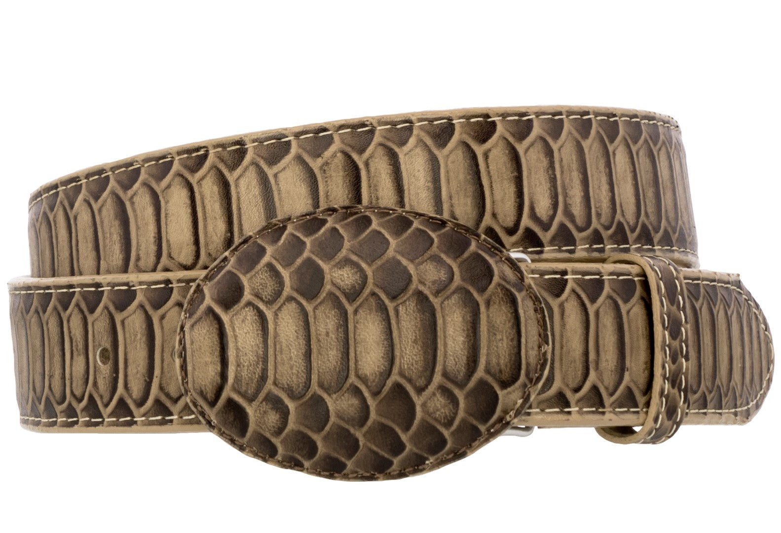 Rustic Sand Western Cowboy Belt Snake Print Leather - Rodeo Buckle