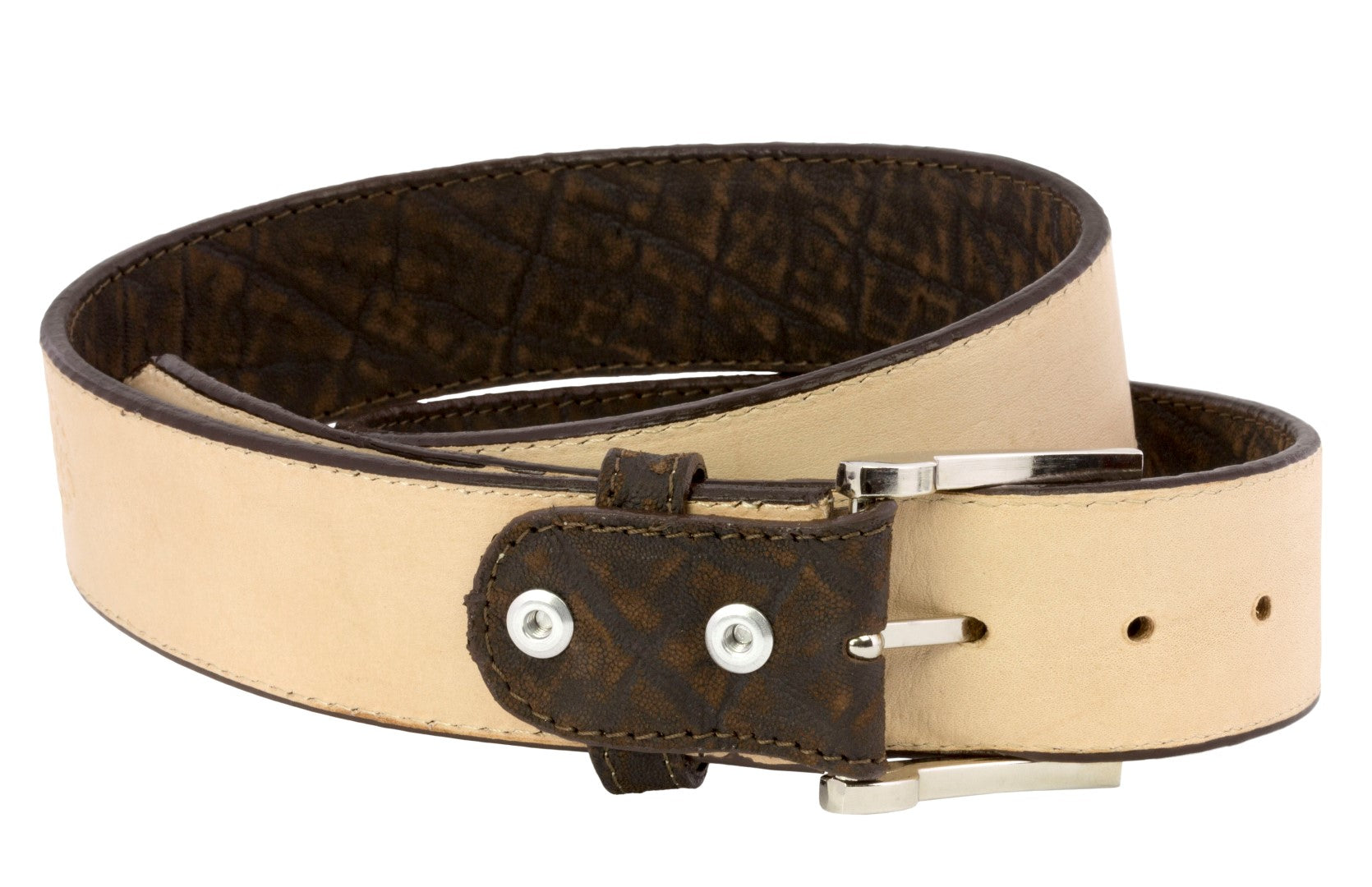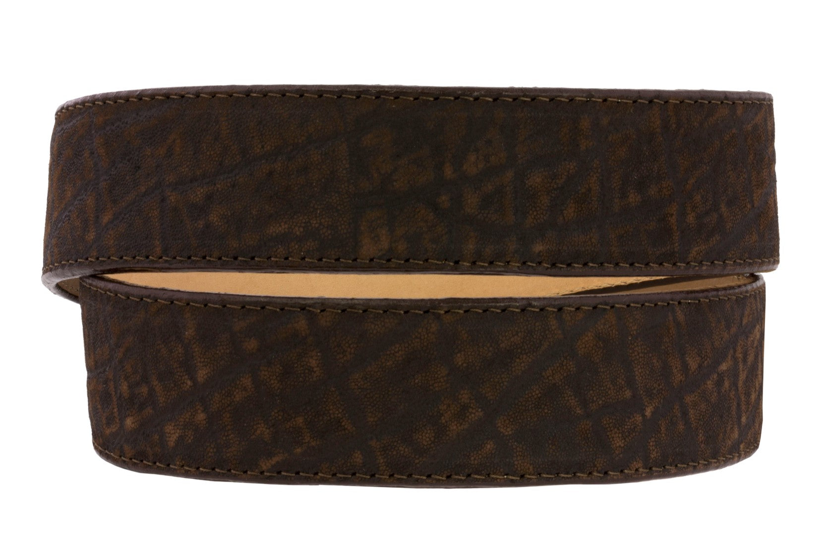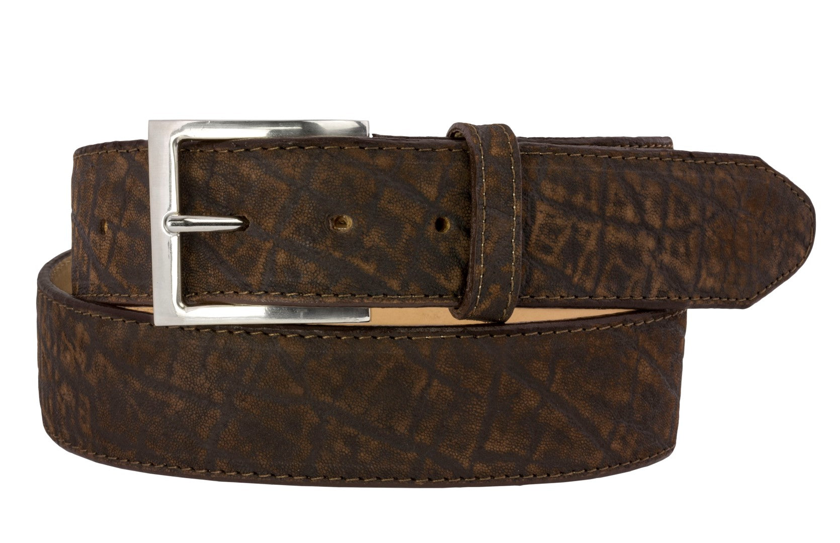 Rustic Brown Western Cowboy Belt Elephant Print Leather Cinto - Silver Buckle
