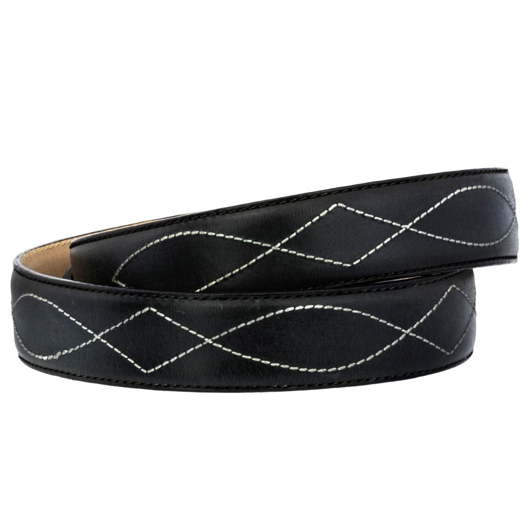 Black Western Cowboy Leather Belt Classic Embroidery - Rodeo Buckle