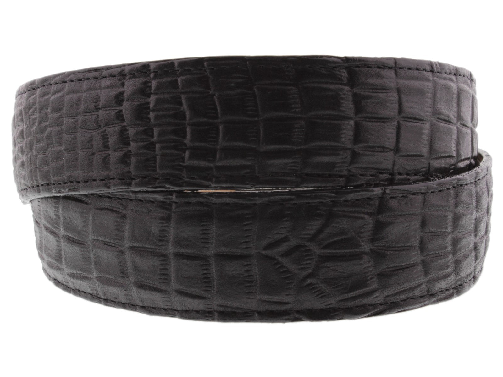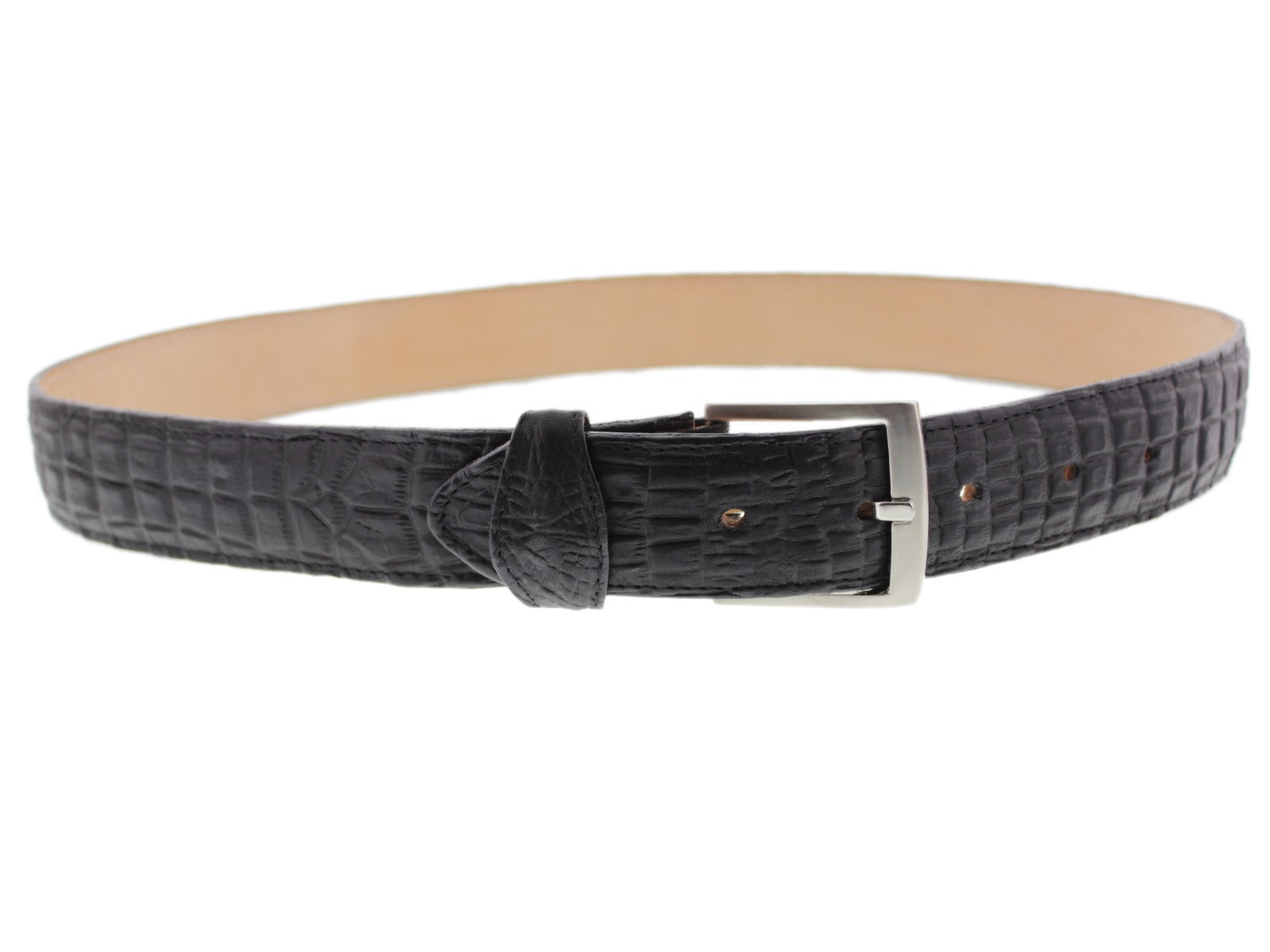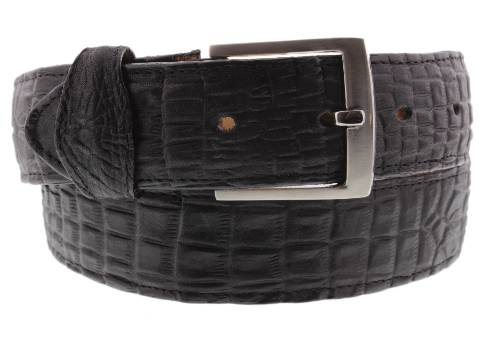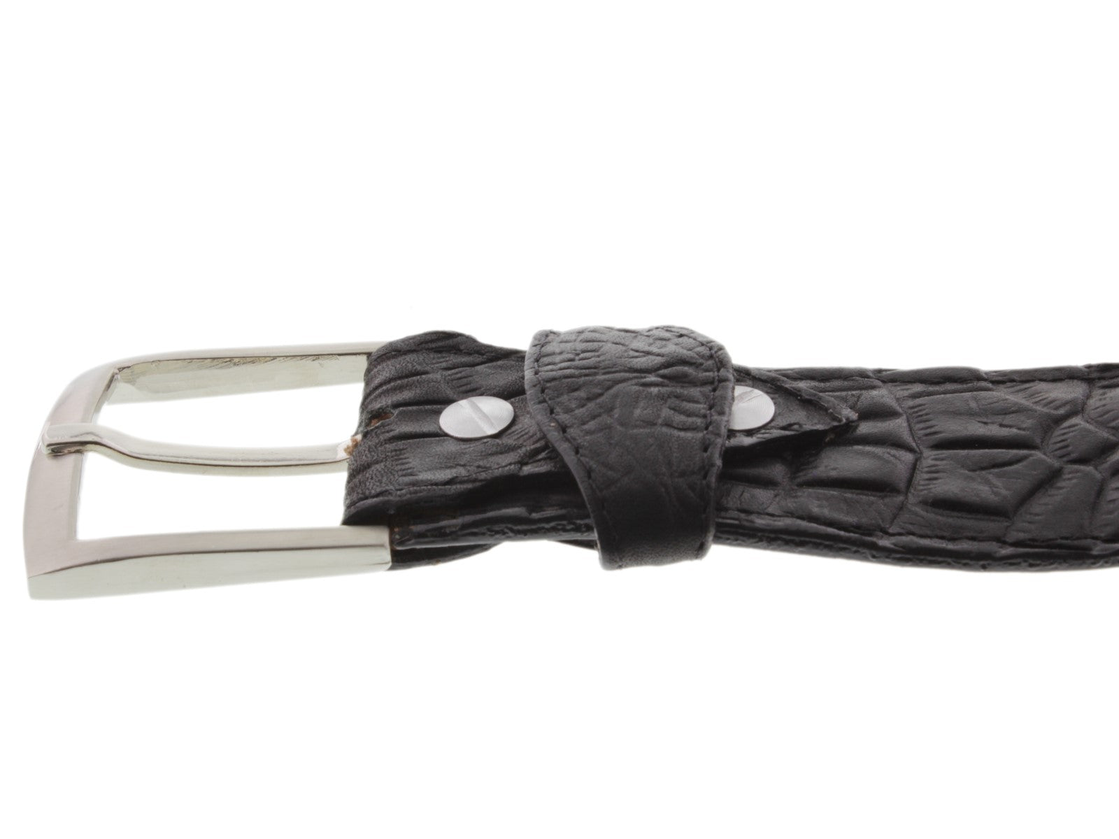 Men's Black Crocodile Belly Pattern Leather Cowboy Belt - Silver Buckle