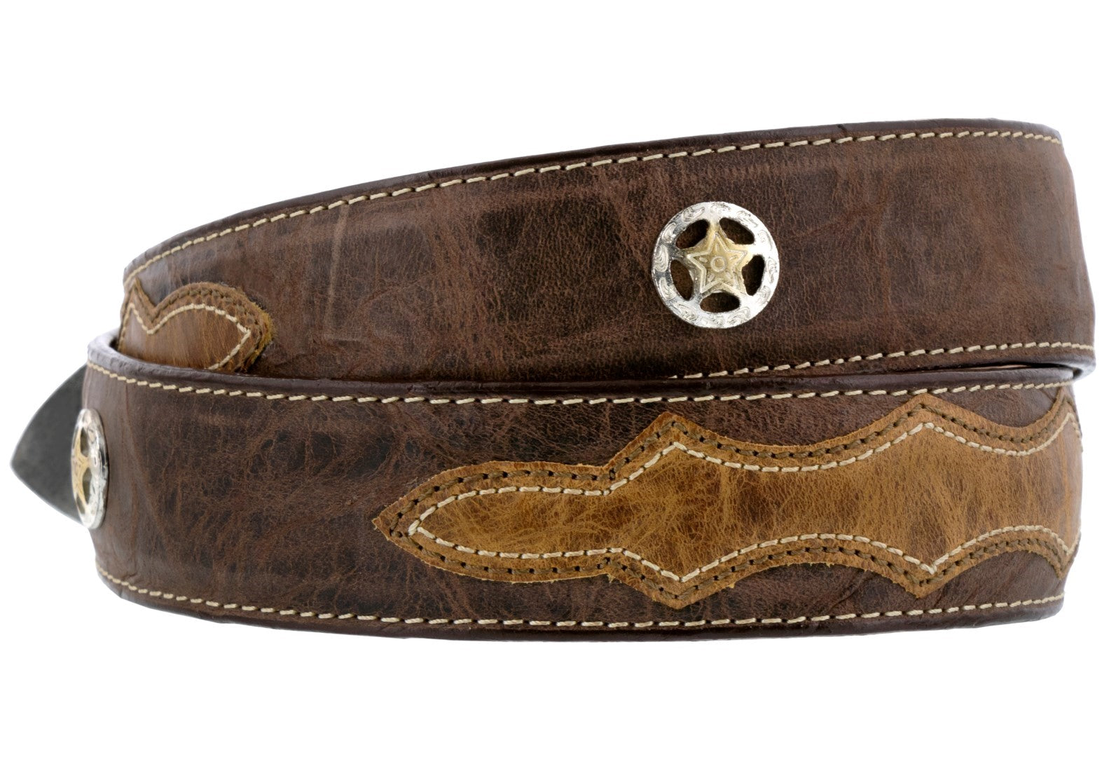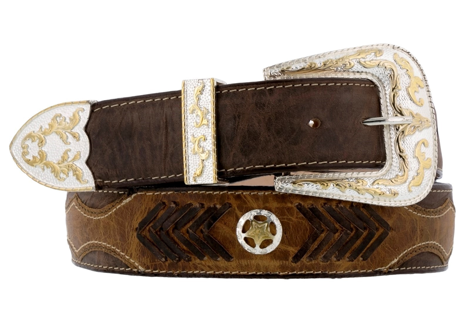 Brown Western Cowboy Leather Belt Ranger Concho Cinto - Silver Buckle
