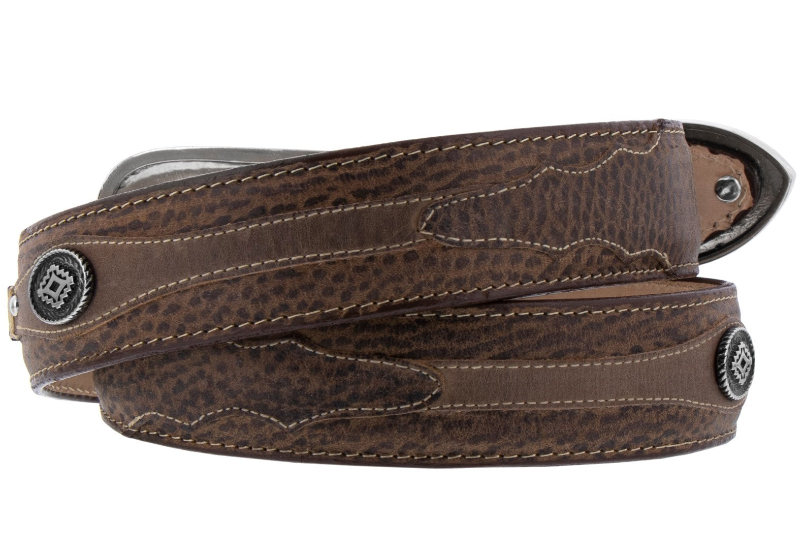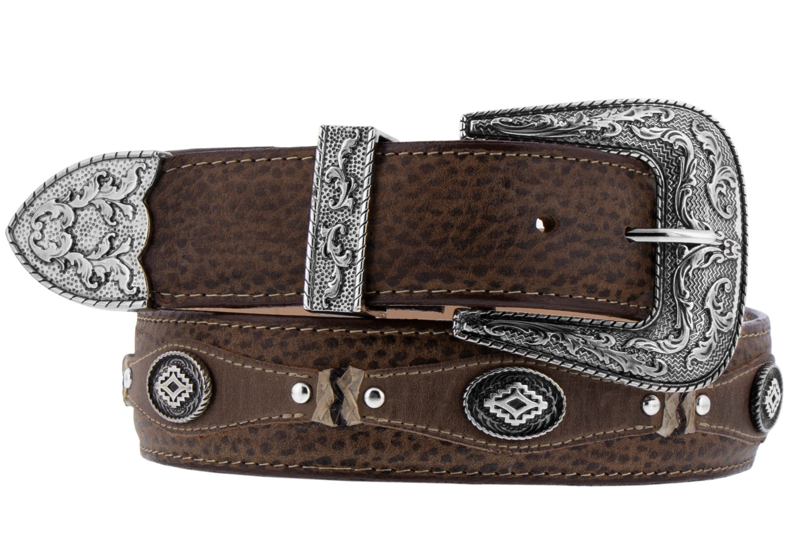 Rustic Brown Western Cowboy Leather Belt Navajo Concho - Silver Buckle
