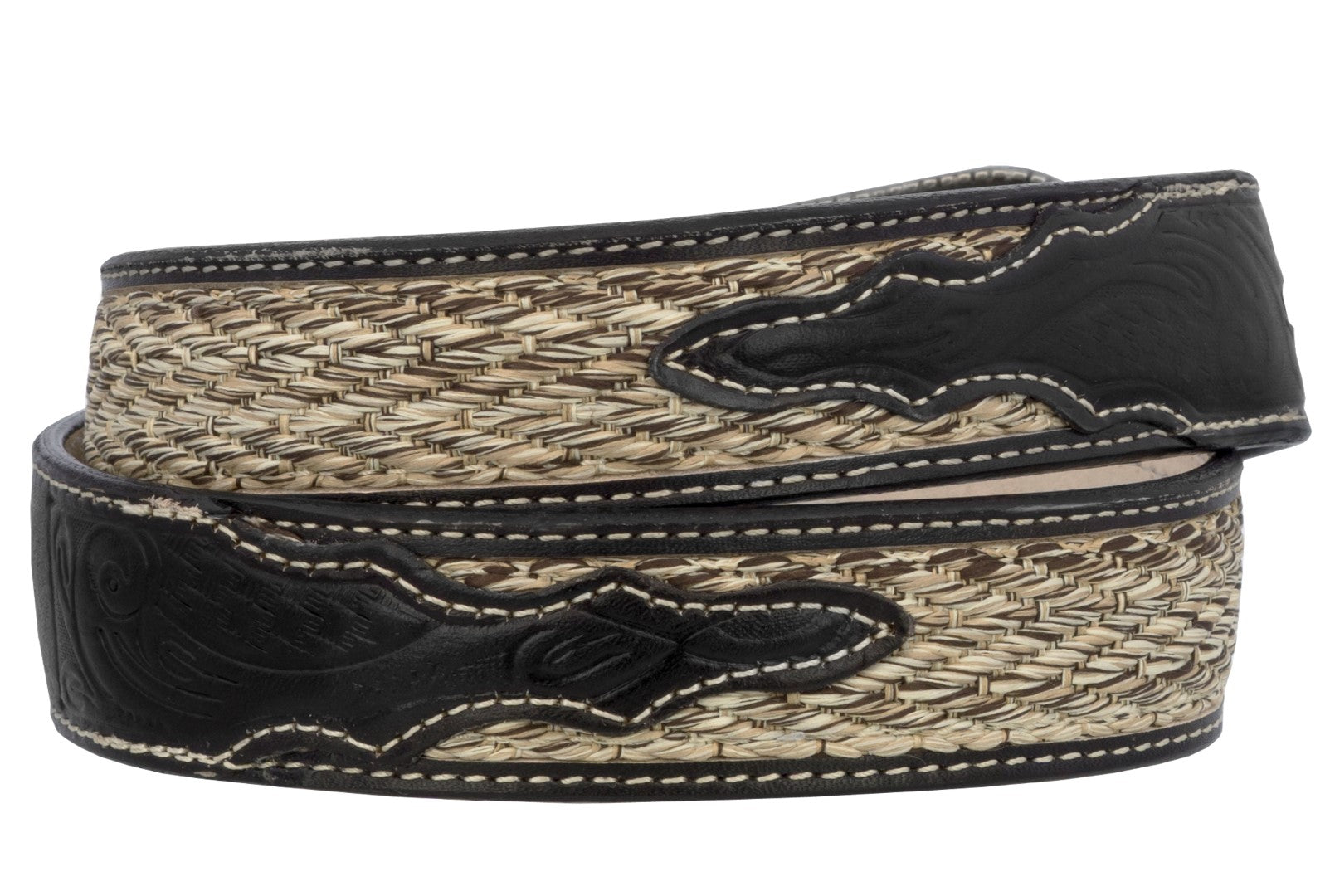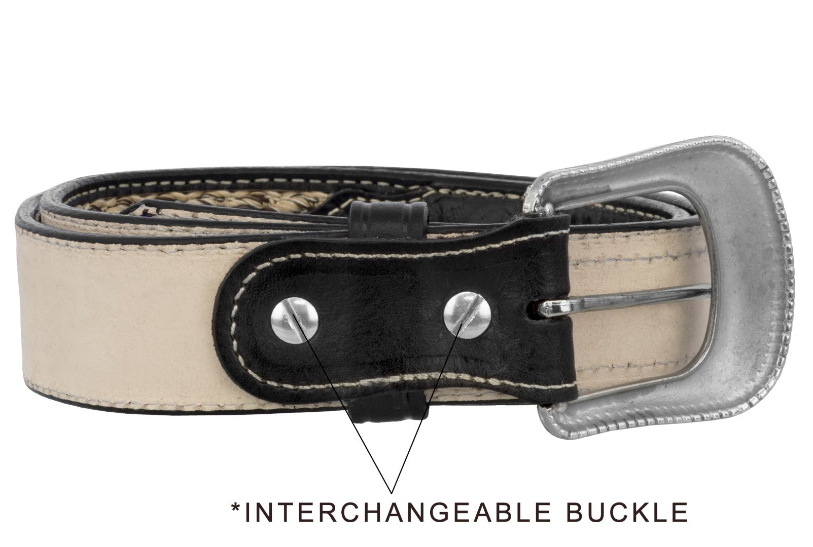 Kids Black Cowboy Belt Tooled Braided Leather - Removable Buckle
