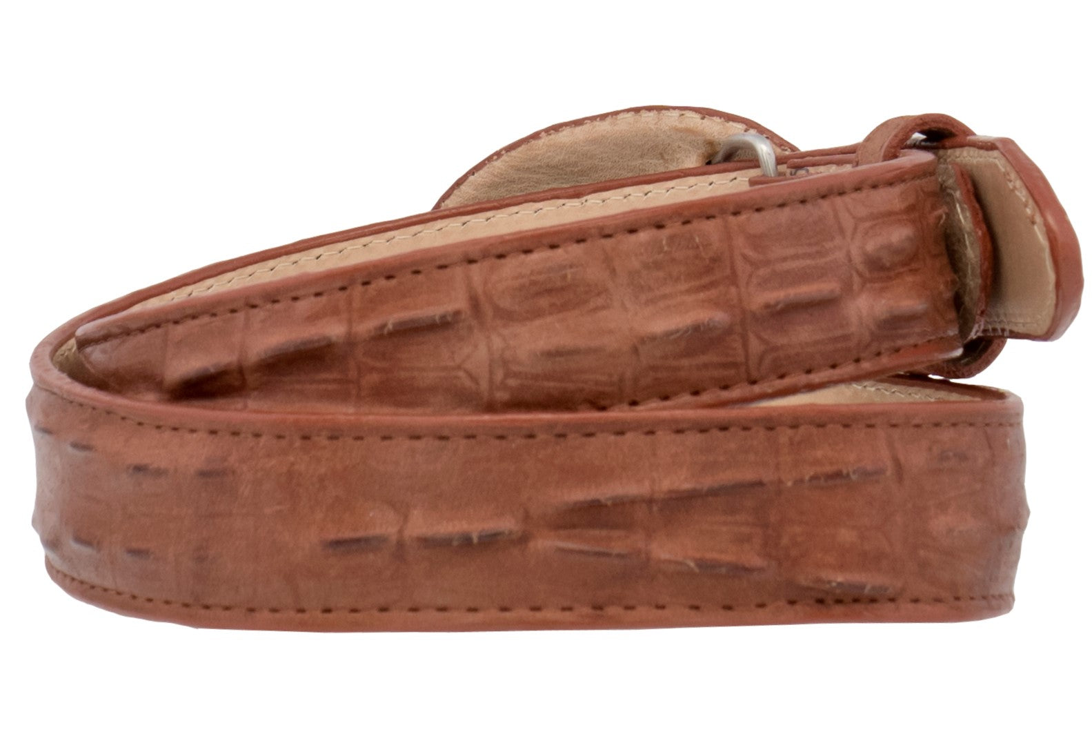 Kids Cognac Western Cowboy Belt Crocodile Print Leather - Rodeo Buckle