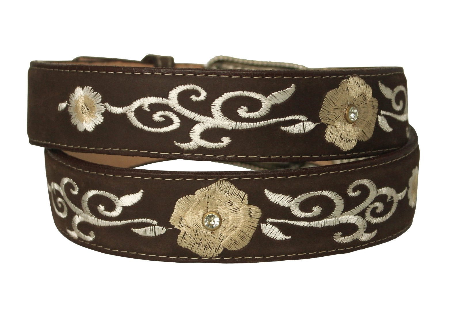 Dark Brown #820 Western Cowboy Belt Floral Leather - Removable Buckle