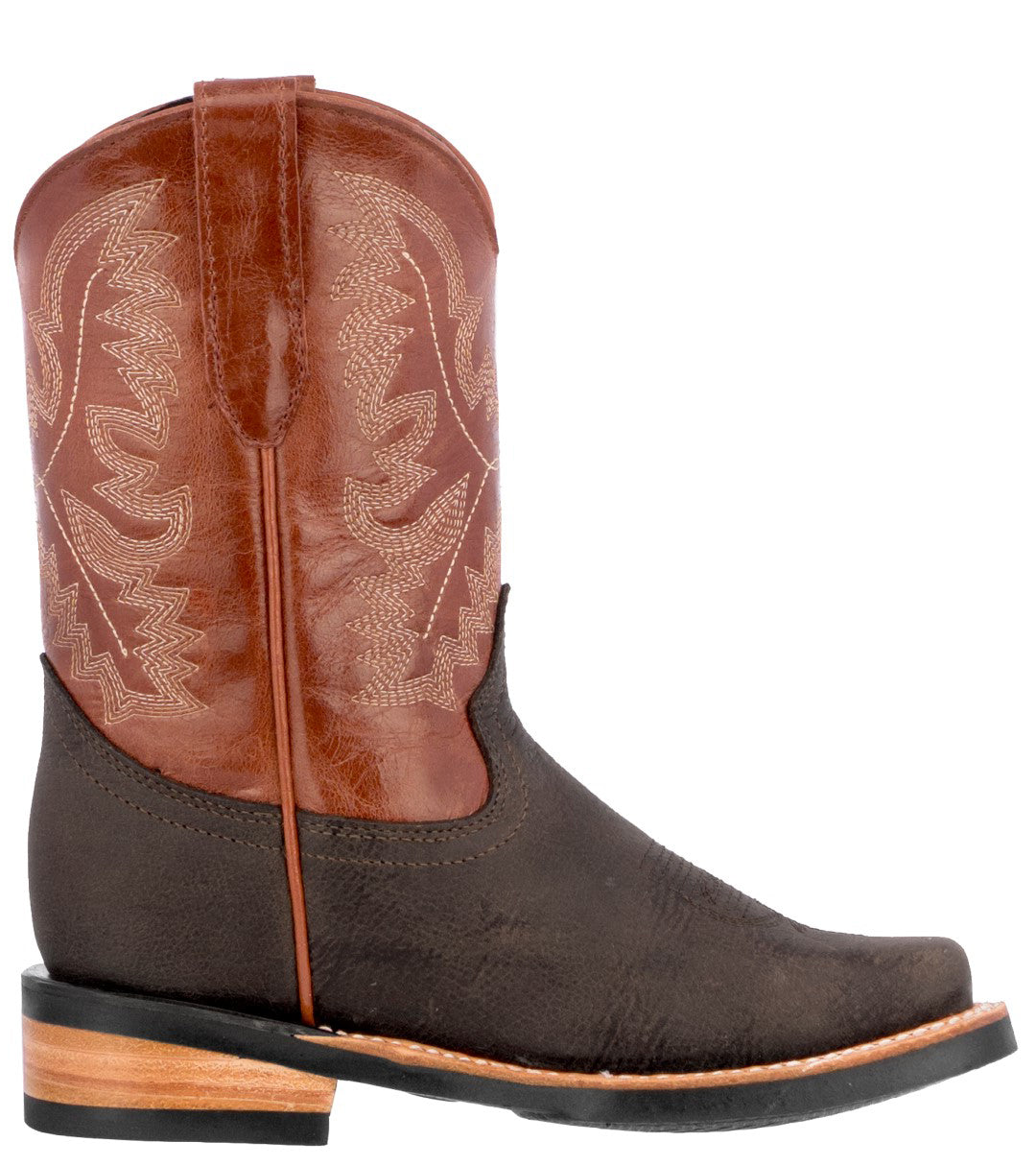 Kids Unisex Genuine Leather Western Wear Boots Cognac Square Toe Botas
