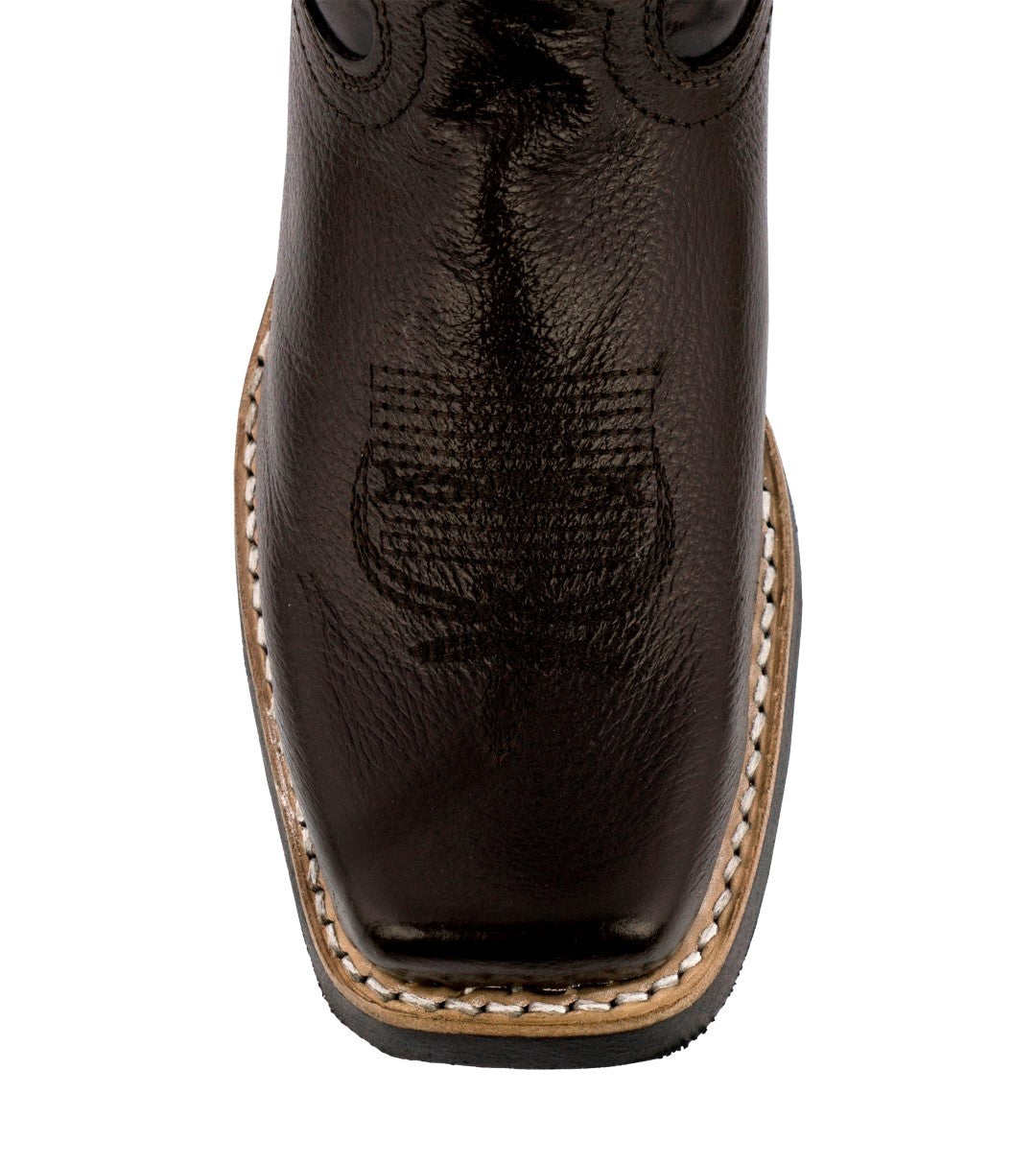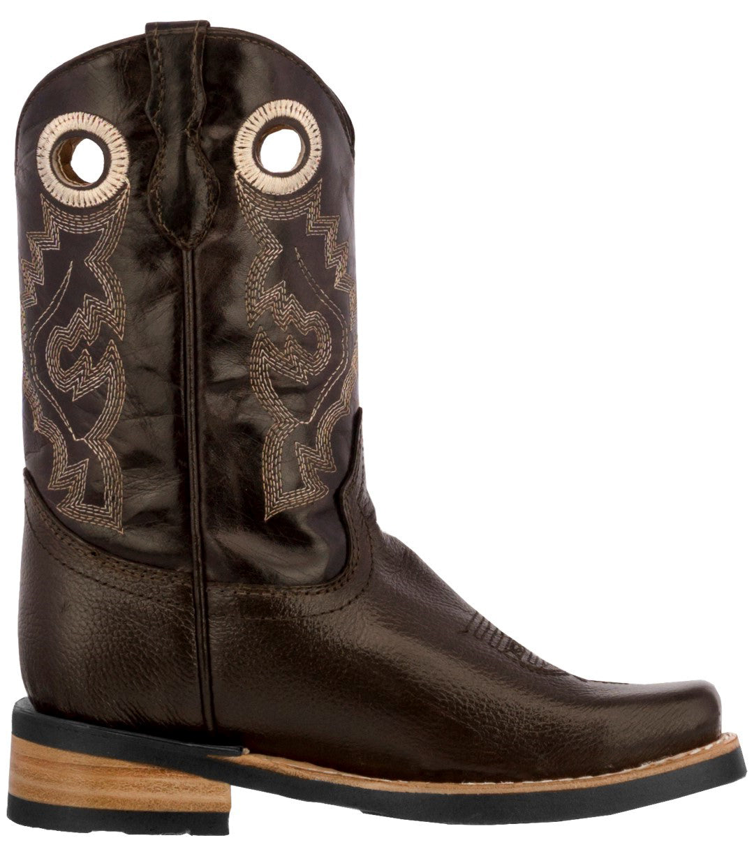 Kids Unisex Real Leather Western Boots Smooth Dark Brown Square Toe Pull Botas