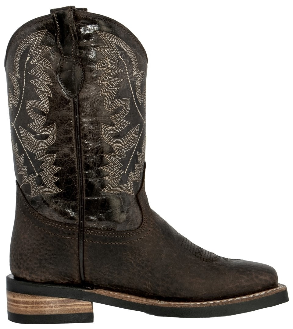 Kids Toddler Western Cowboy Boots Smooth Square Toe Brown - #108