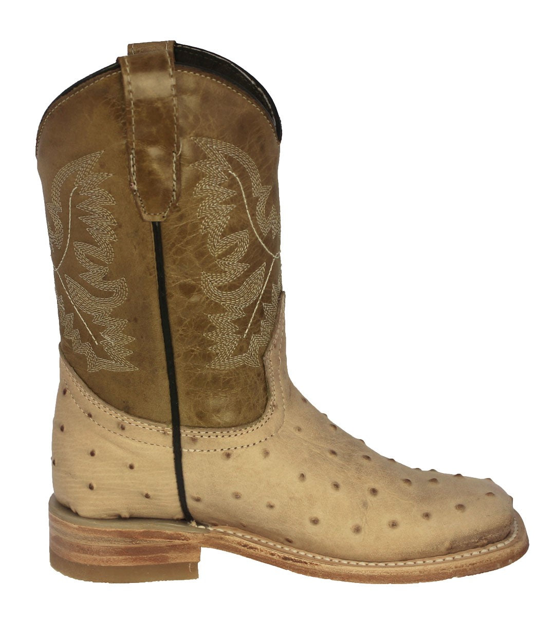 Kids Toddler Sand Ostrich Quill Print Cowboy Boots - Square Toe