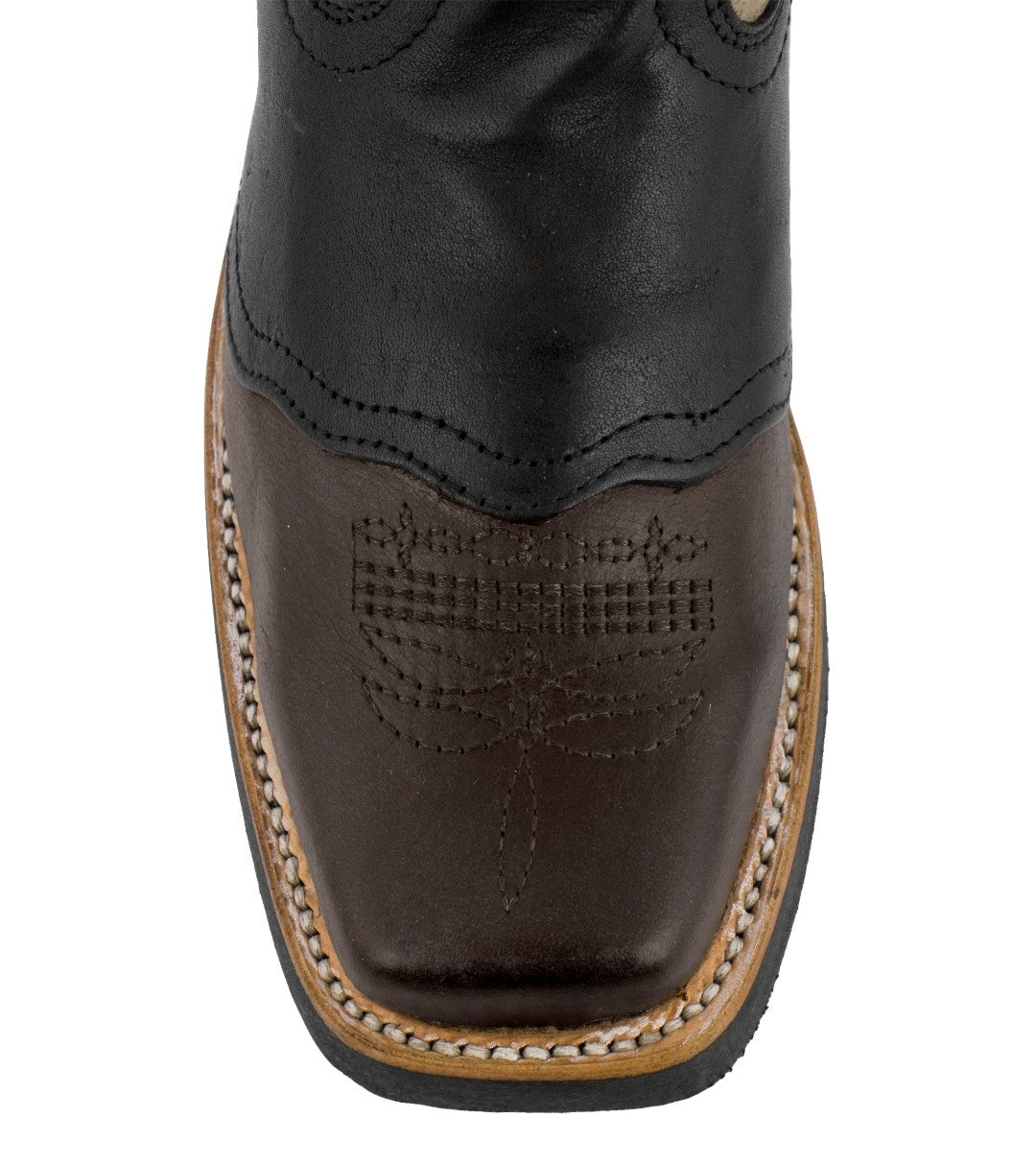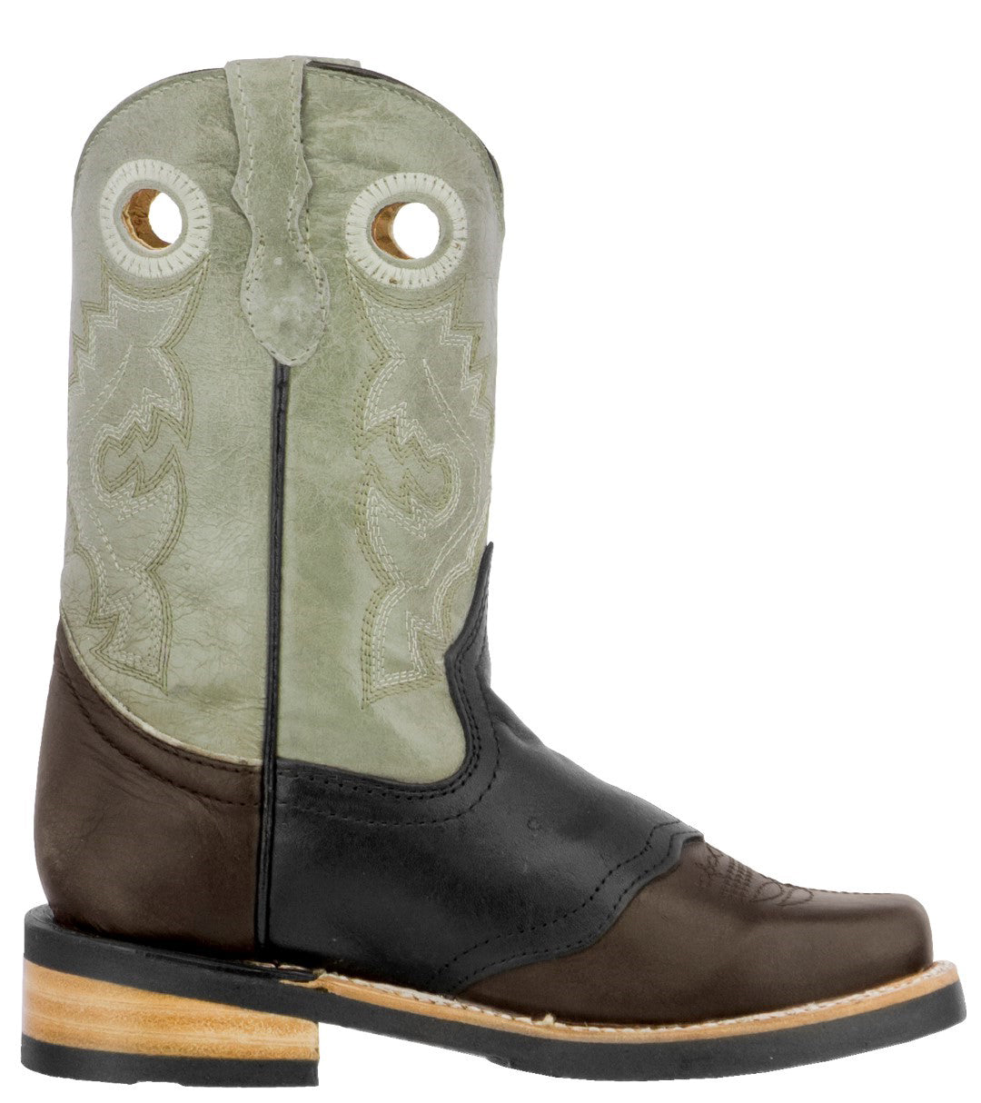 Kids Unisex Real Leather Western Boots Dark Brown Off White Square Toe Botas