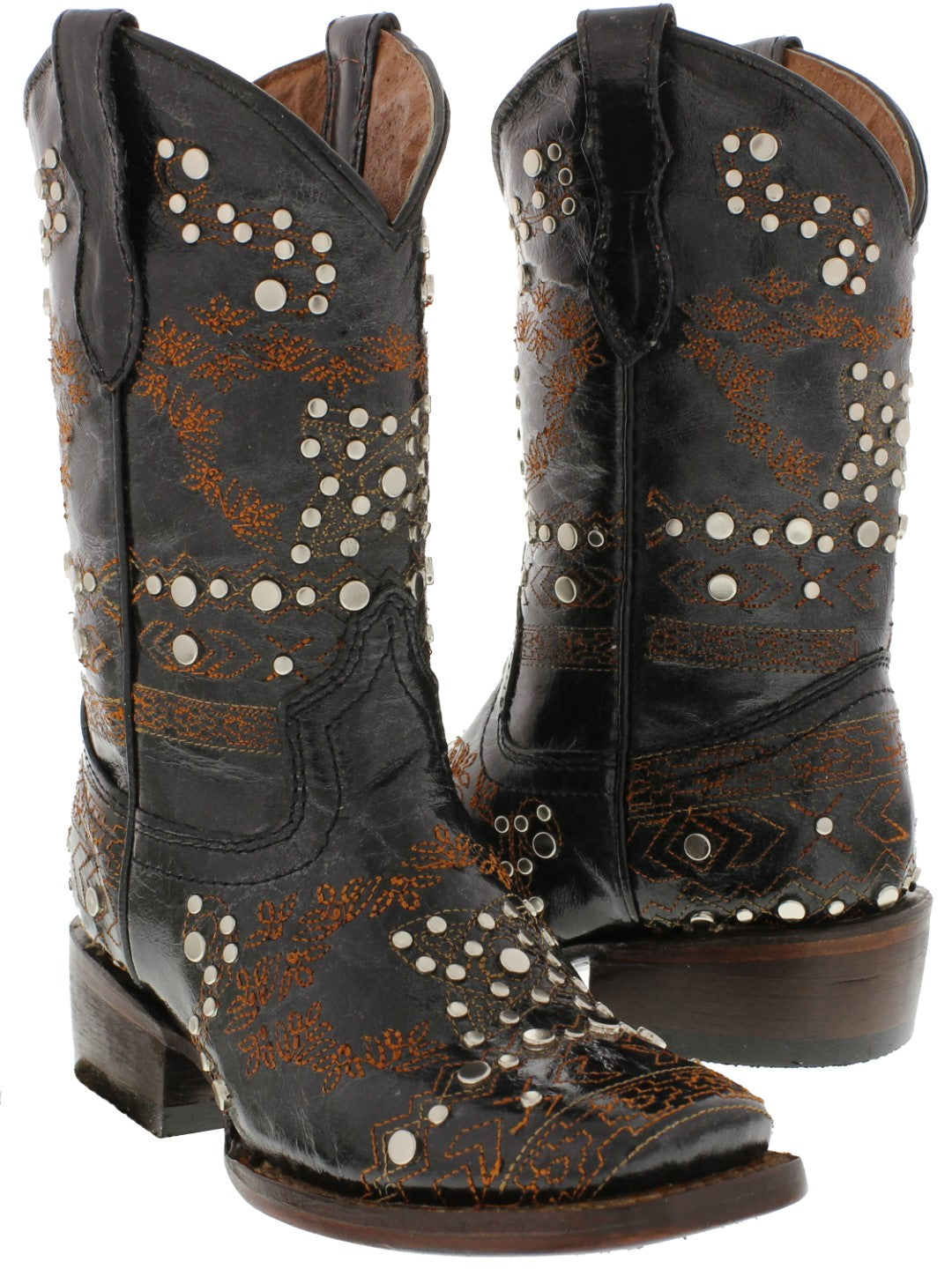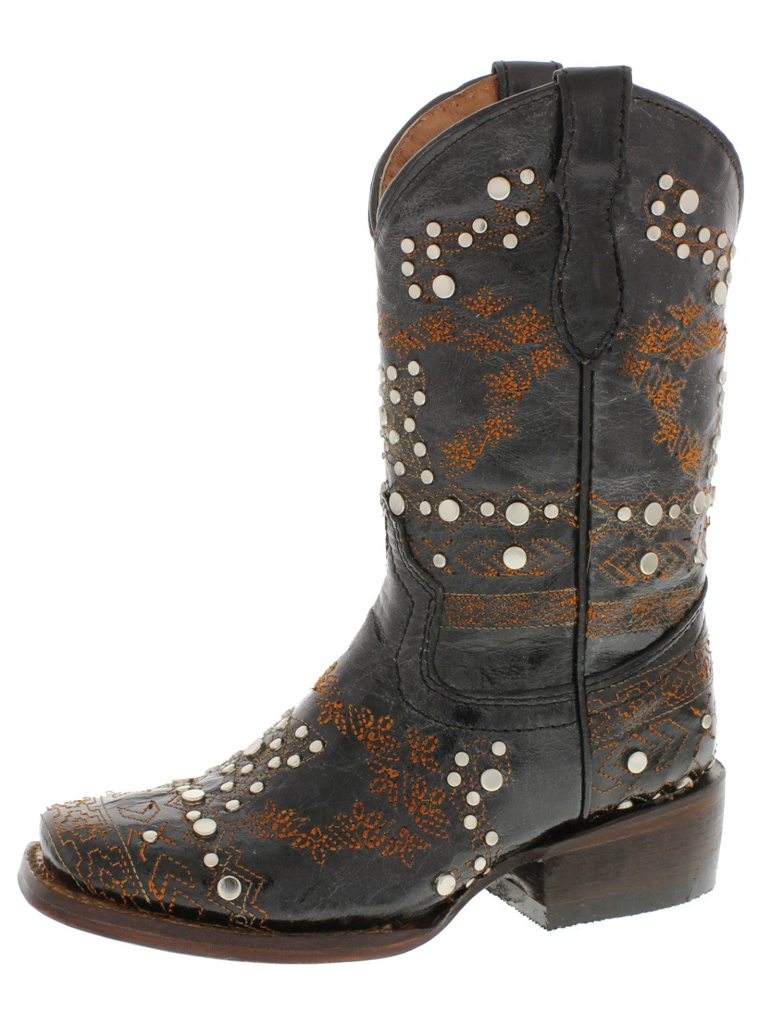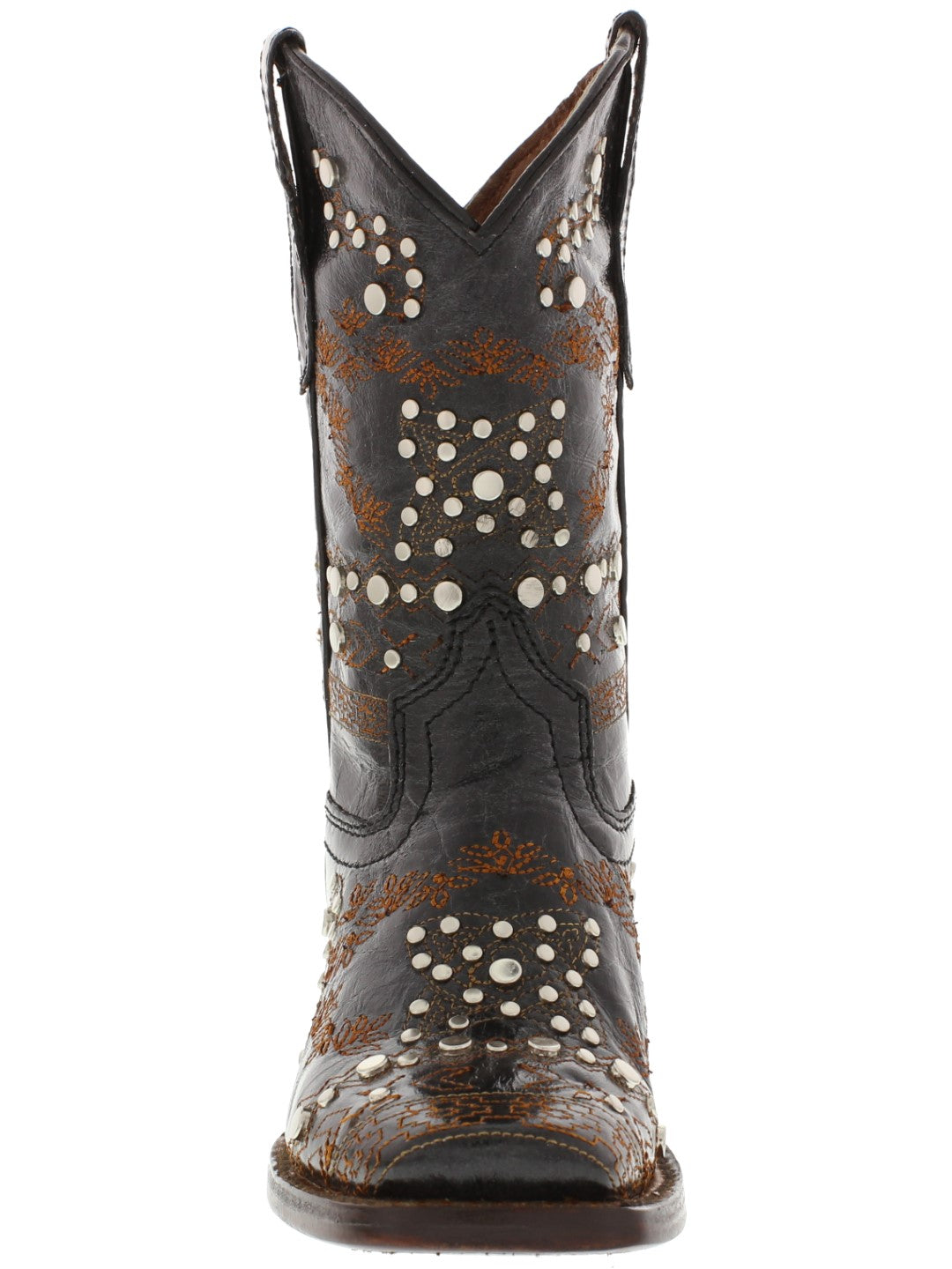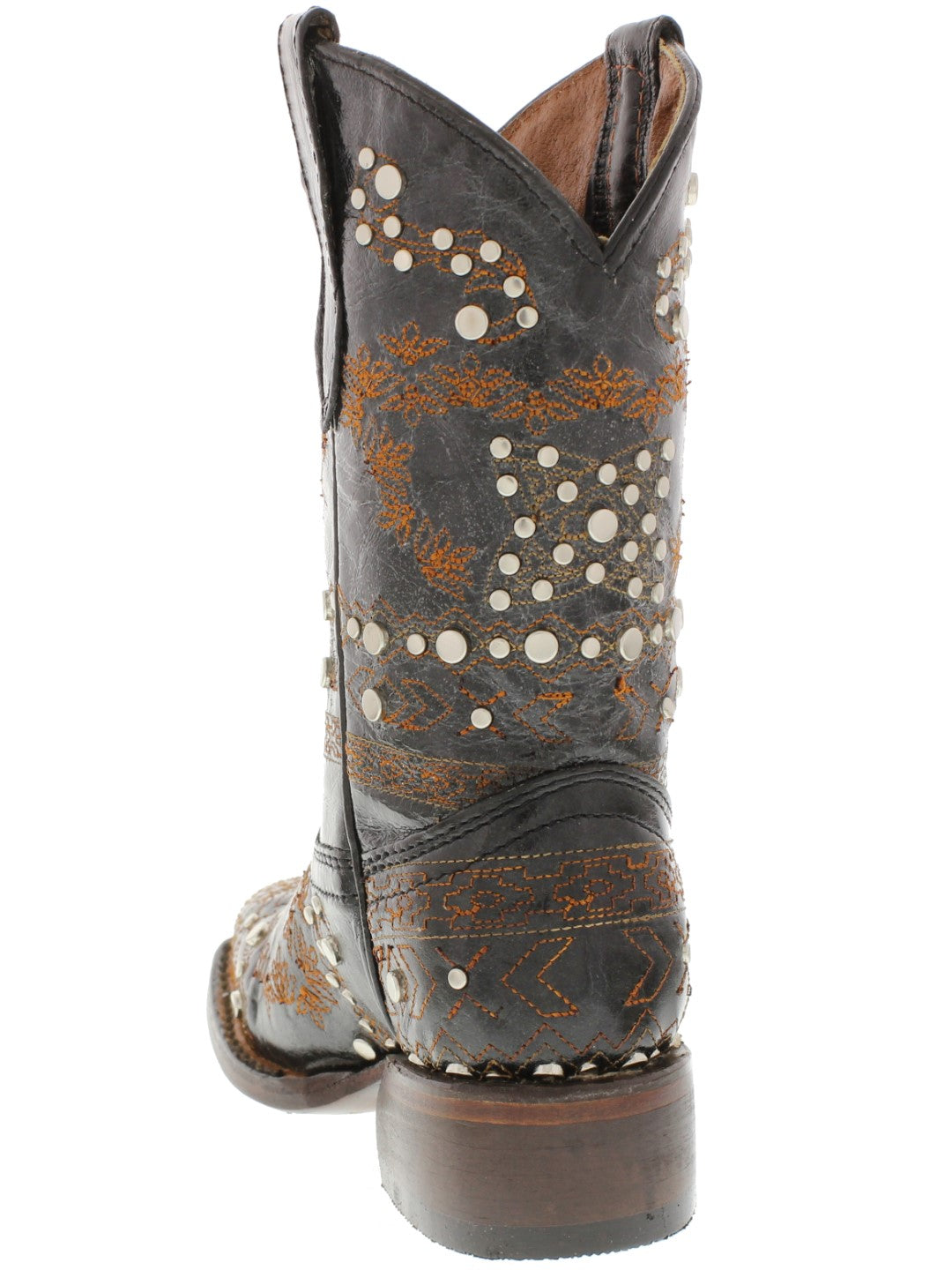 Kids Pescara Black Western Cowboy Boots Leather - Square Toe