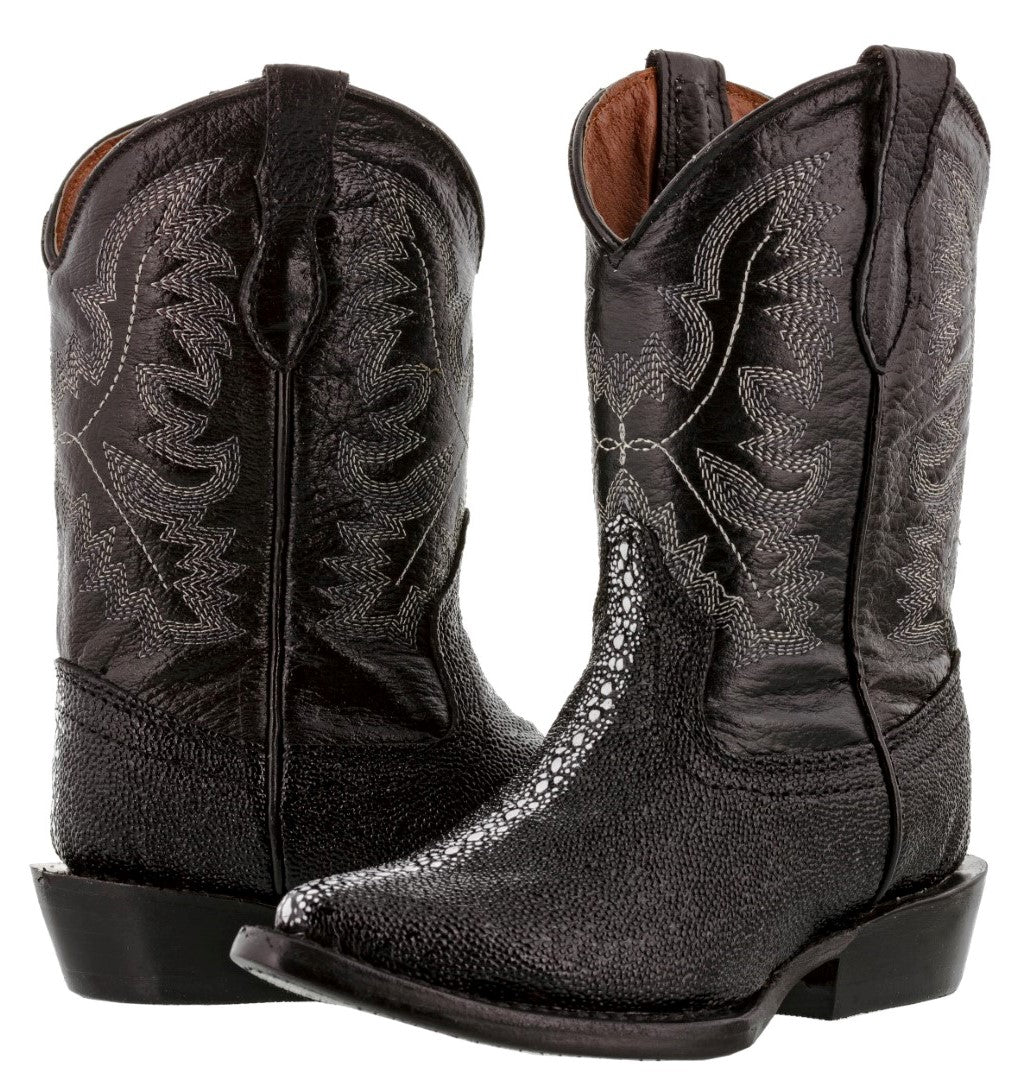 Kids Toddler Black Western Boots Stingray Print J Toe - #205