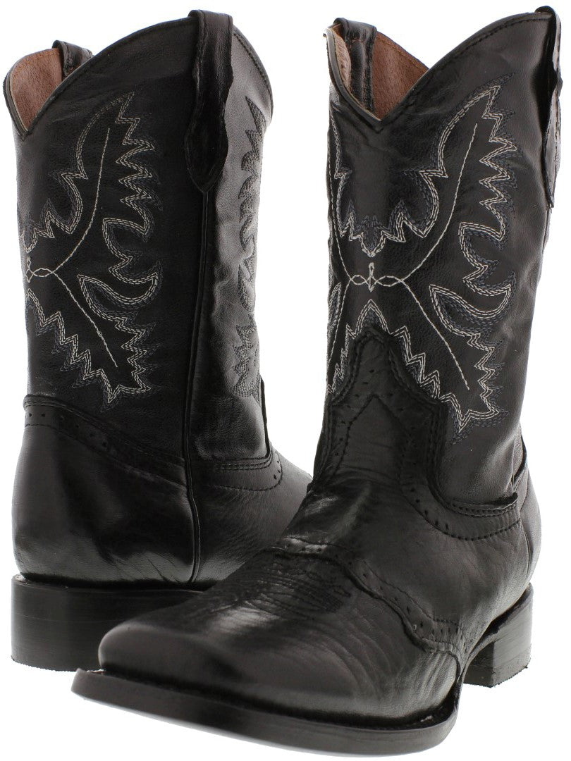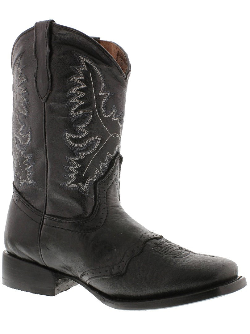 Kids Grizzly Black Western Cowboy Boots Leather - Square Toe