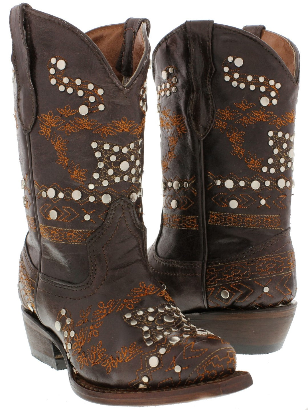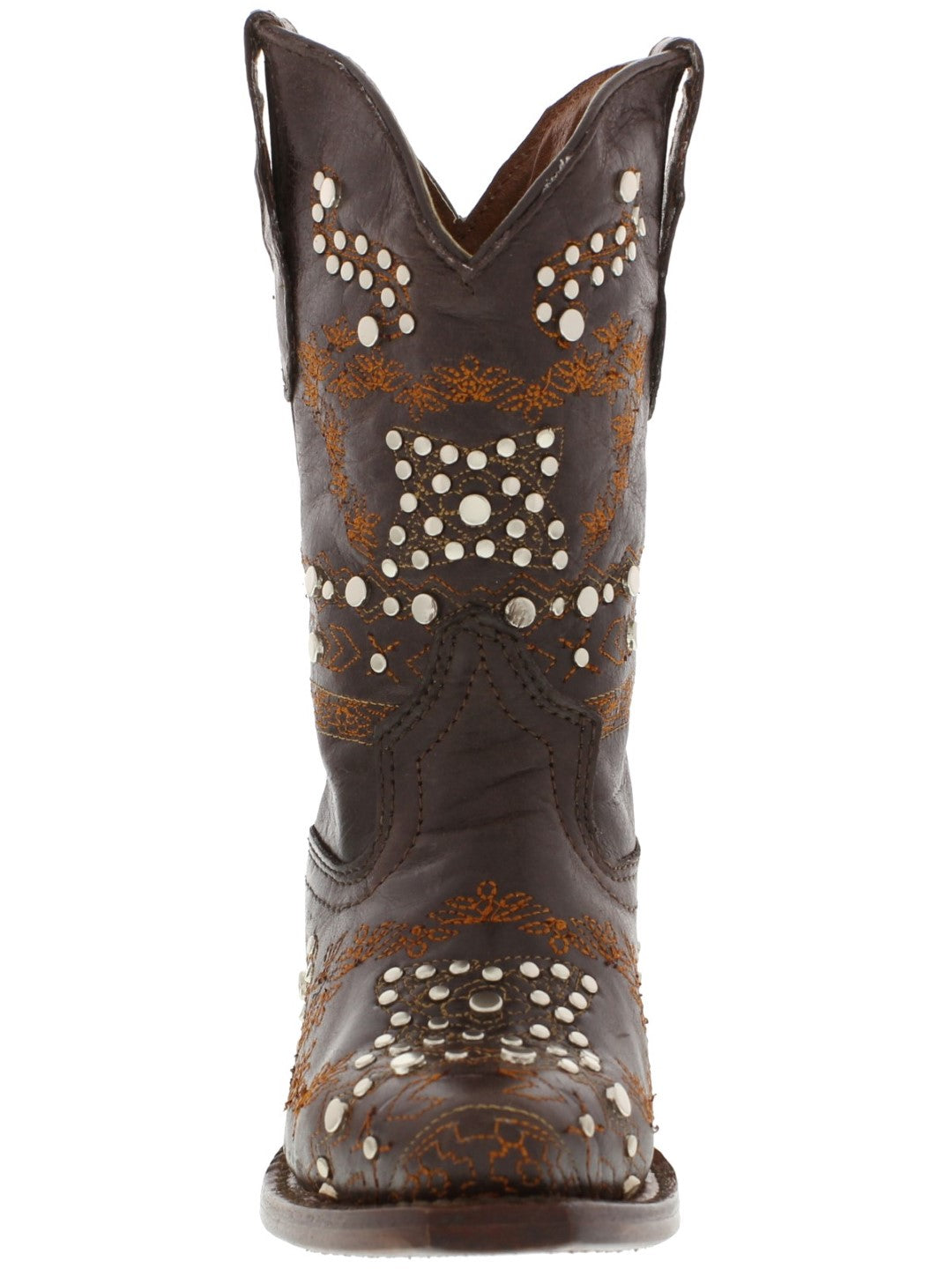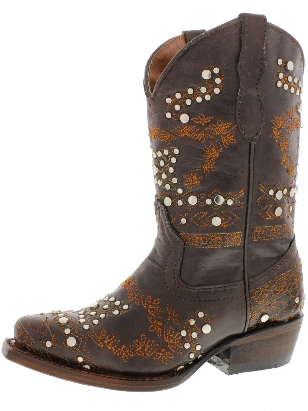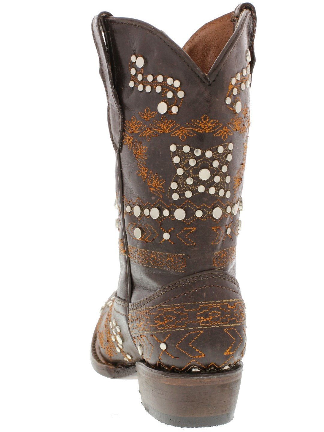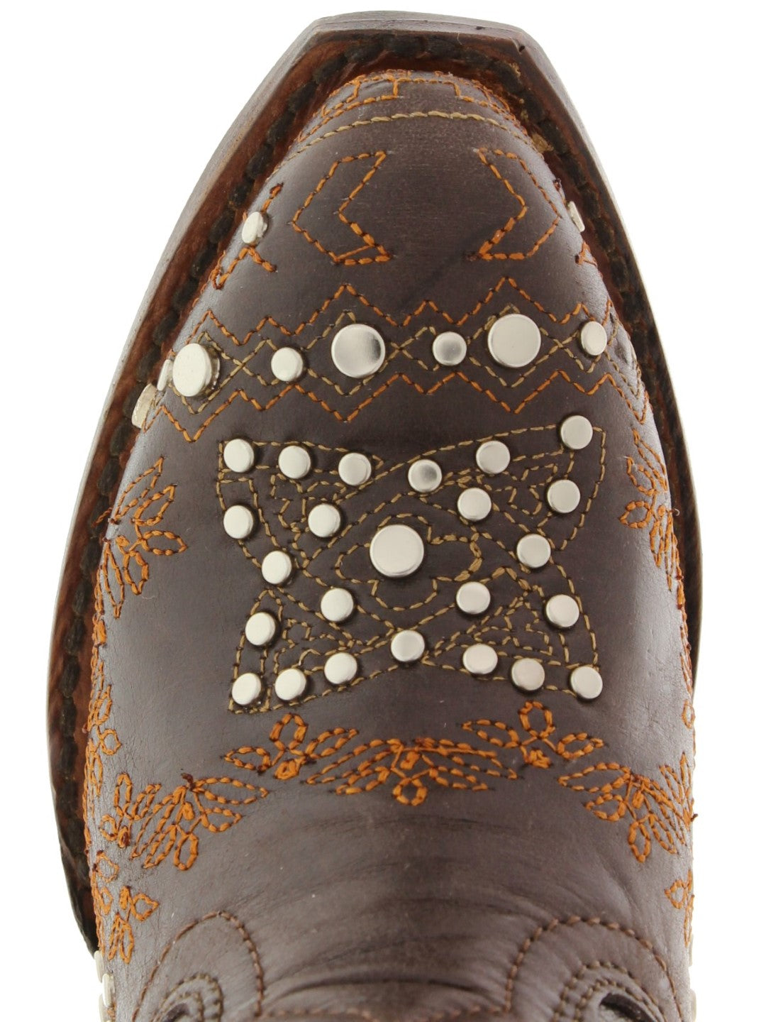 Kids Pescara Brown Western Cowboy Boots Leather - Snip Toe
