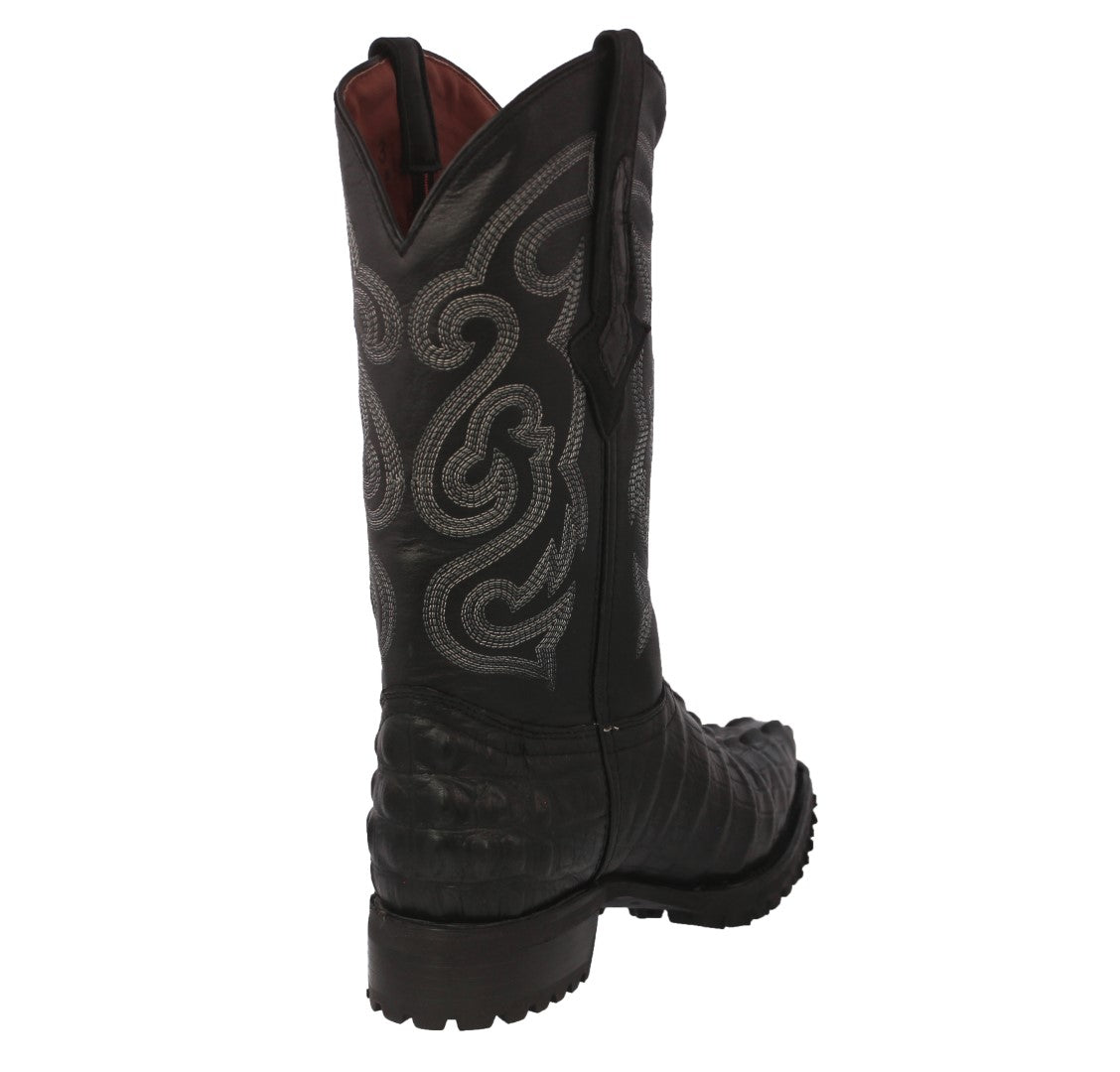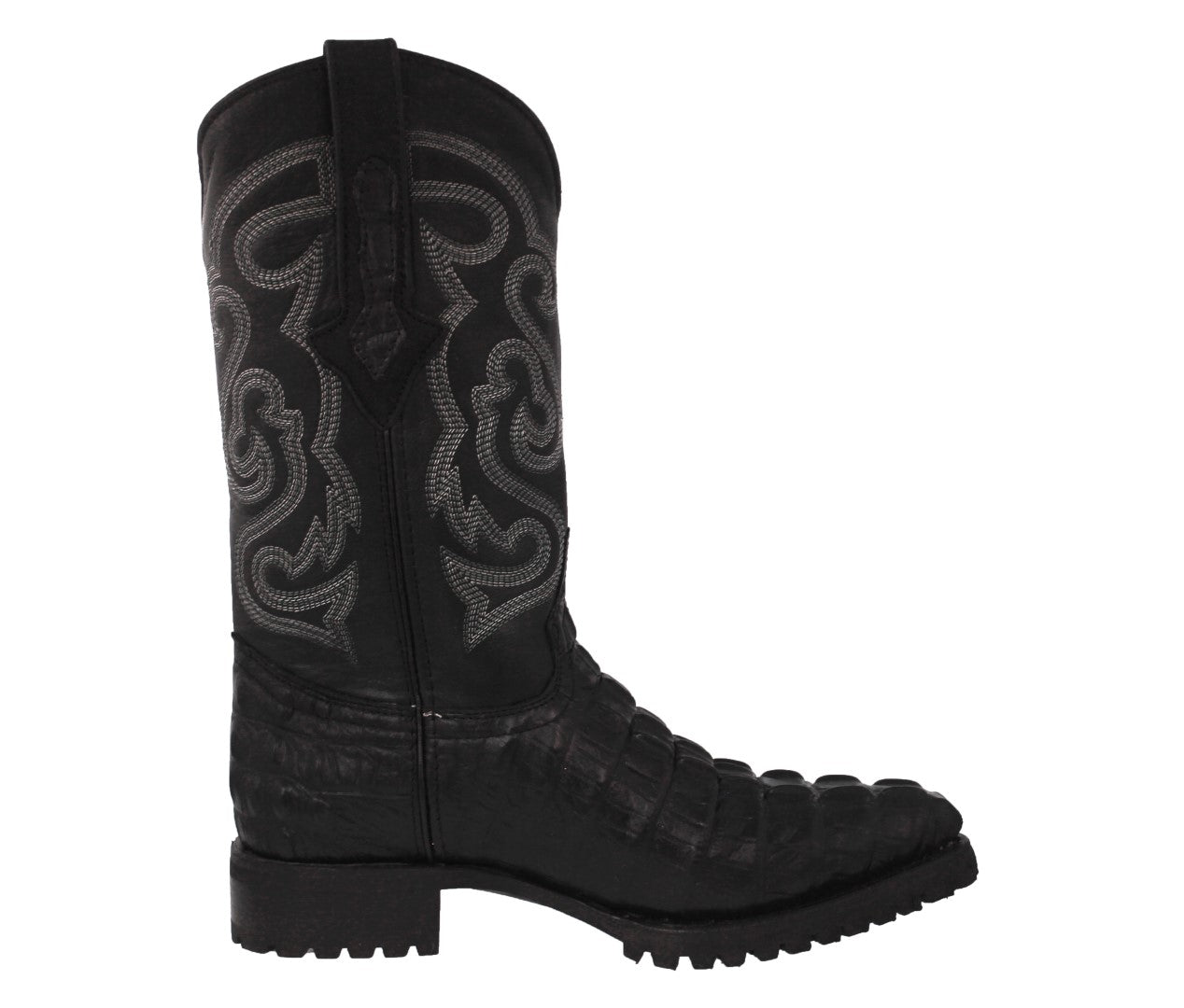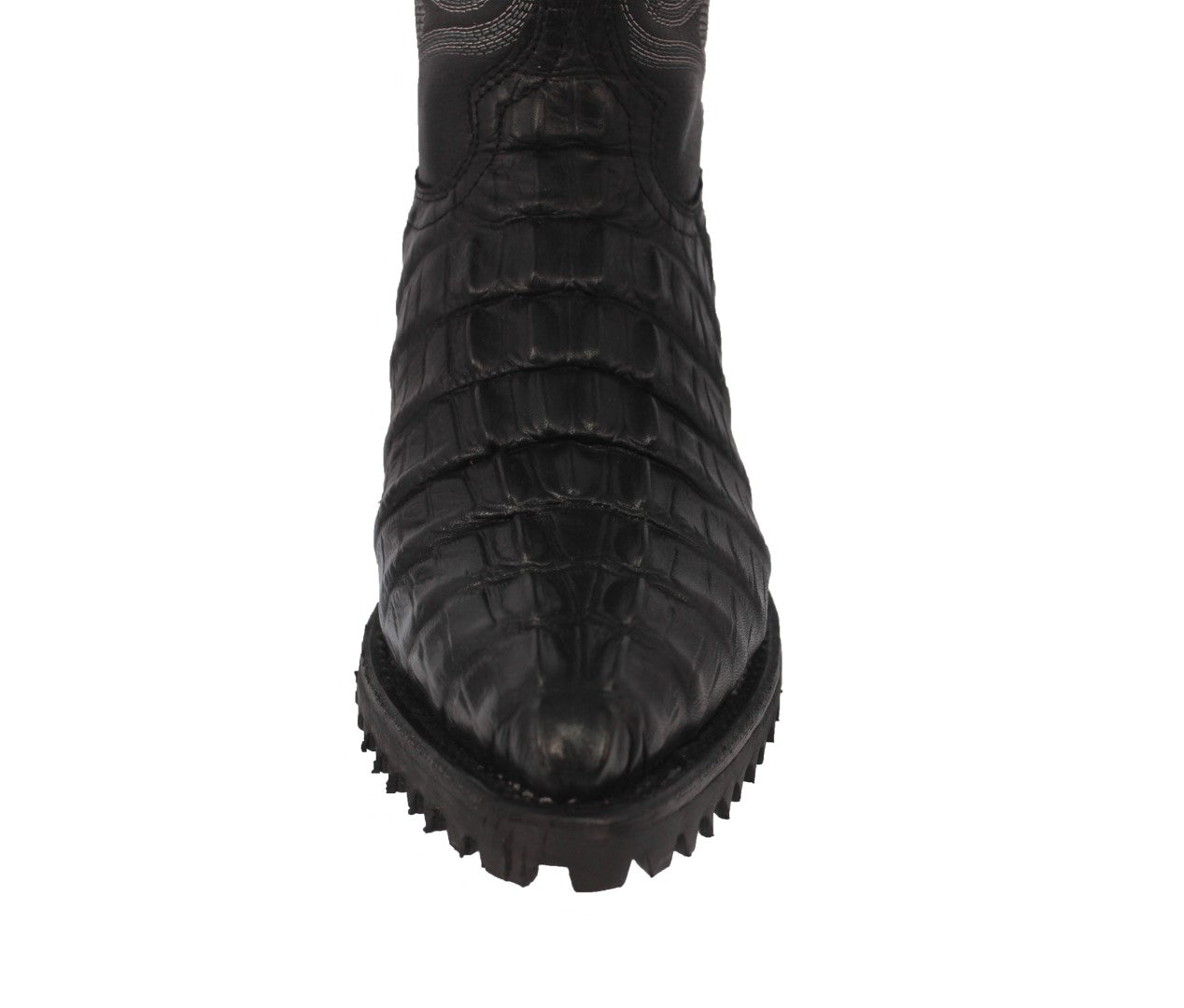 Mens Black Motorcycle Boots Crocodile Tail Print - J Toe