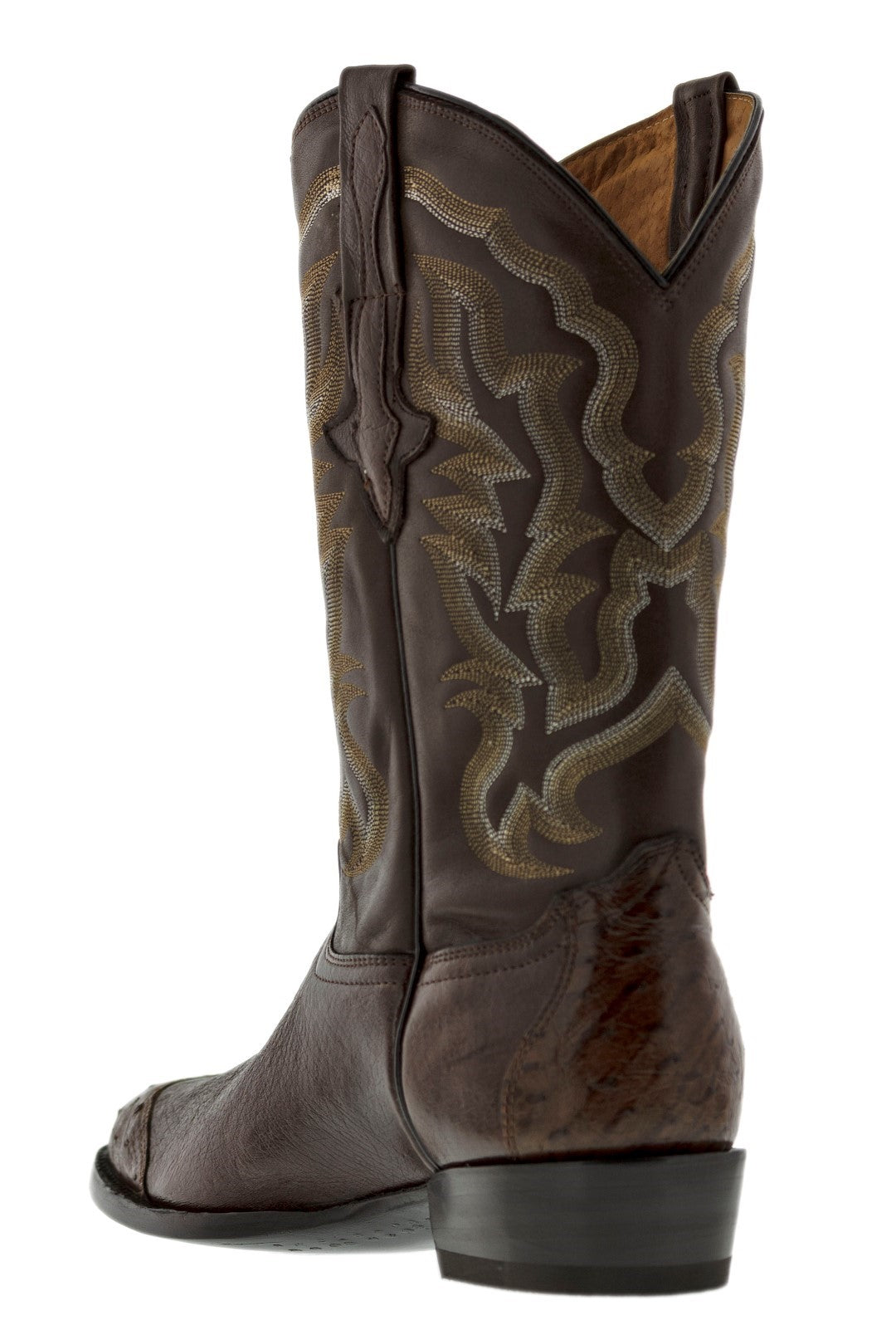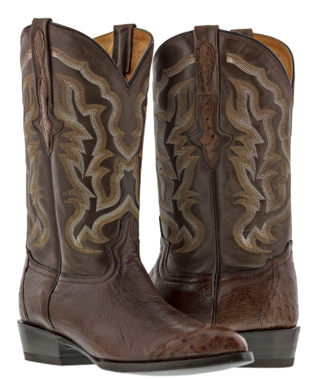Mens Brown Ostrich Skin Overlay Cowboy Boots - J Toe