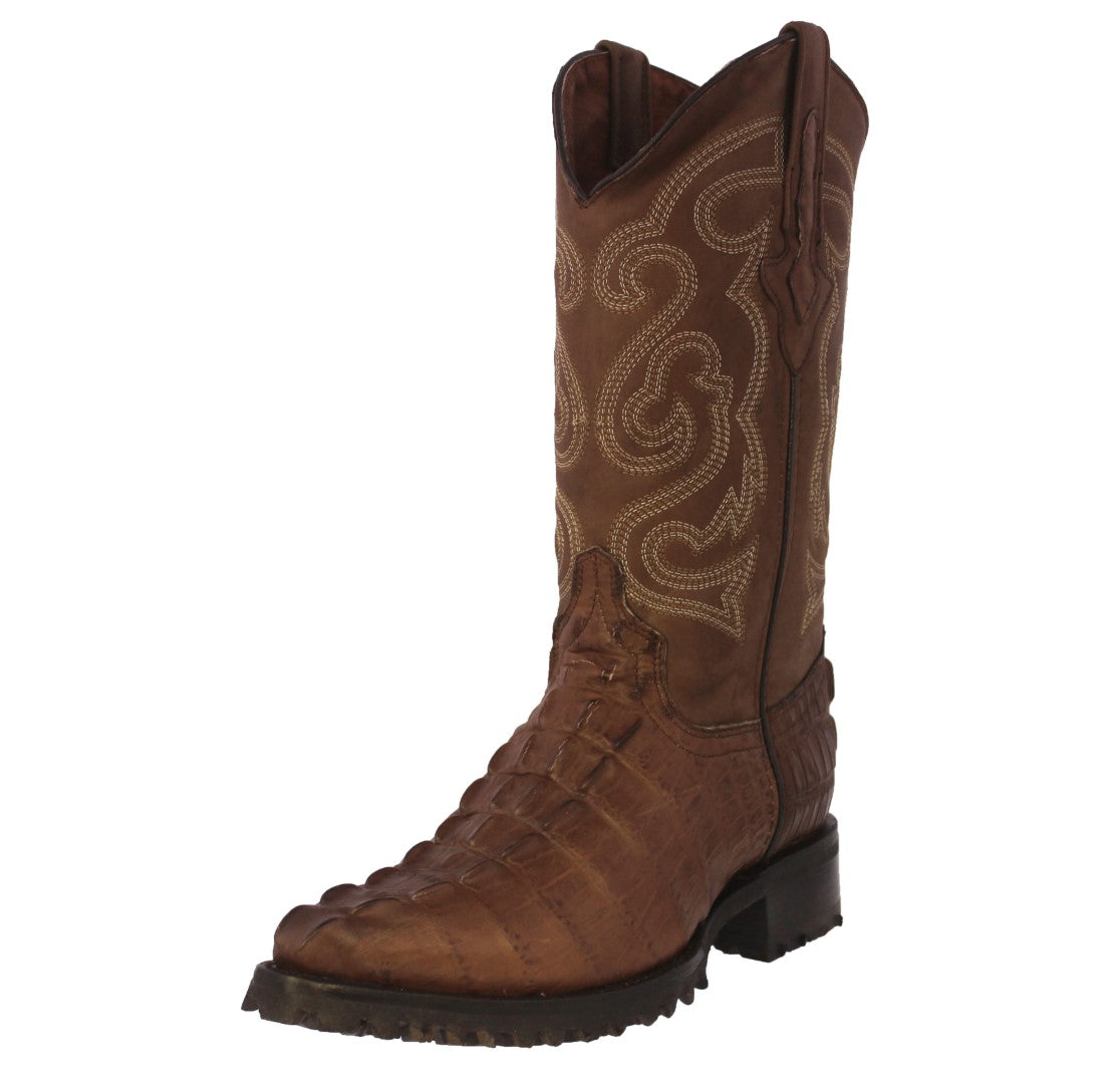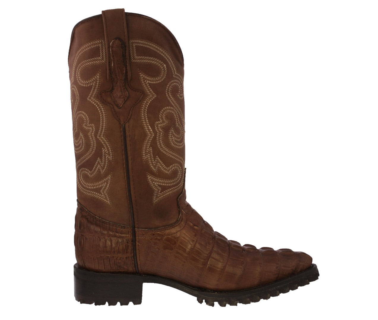 Mens Brown Motorcycle Boots Crocodile Tail Print - J Toe