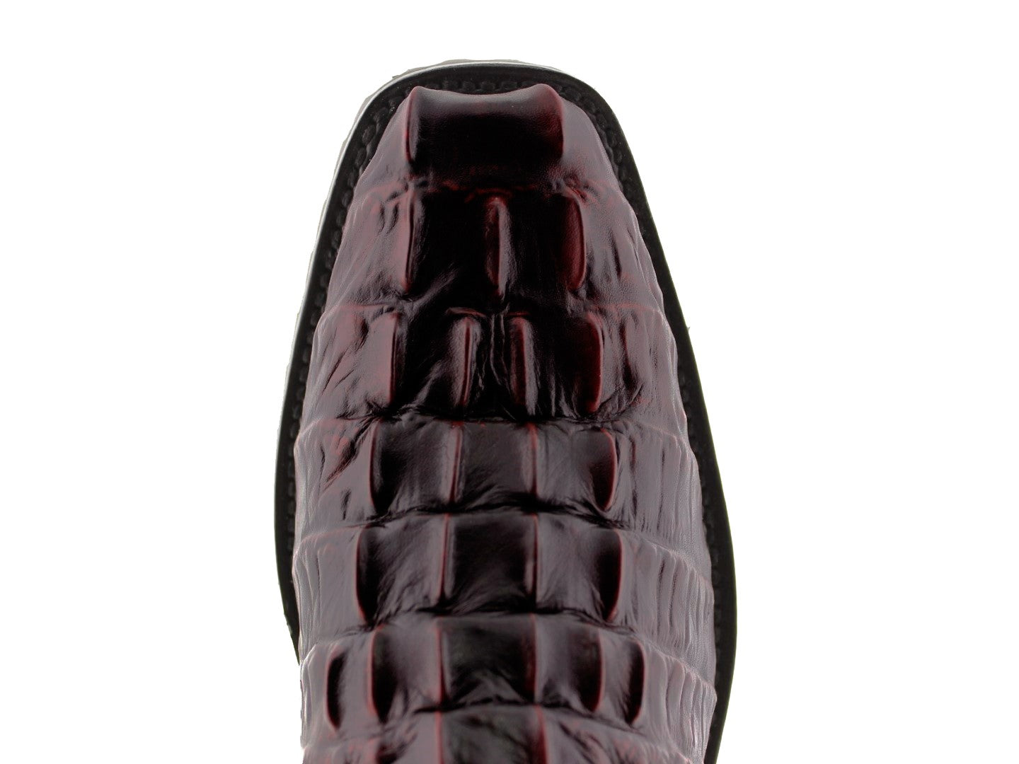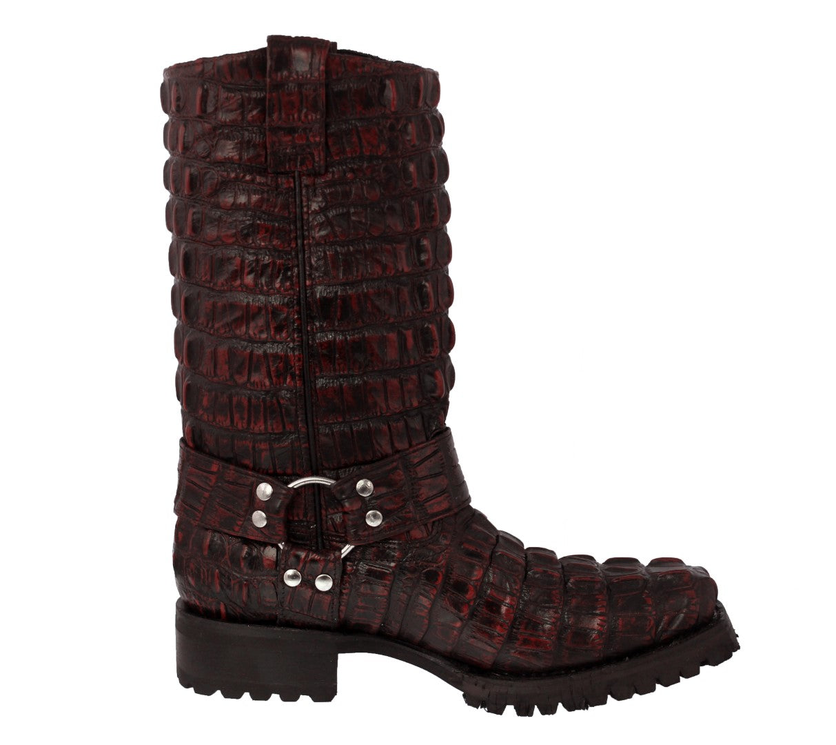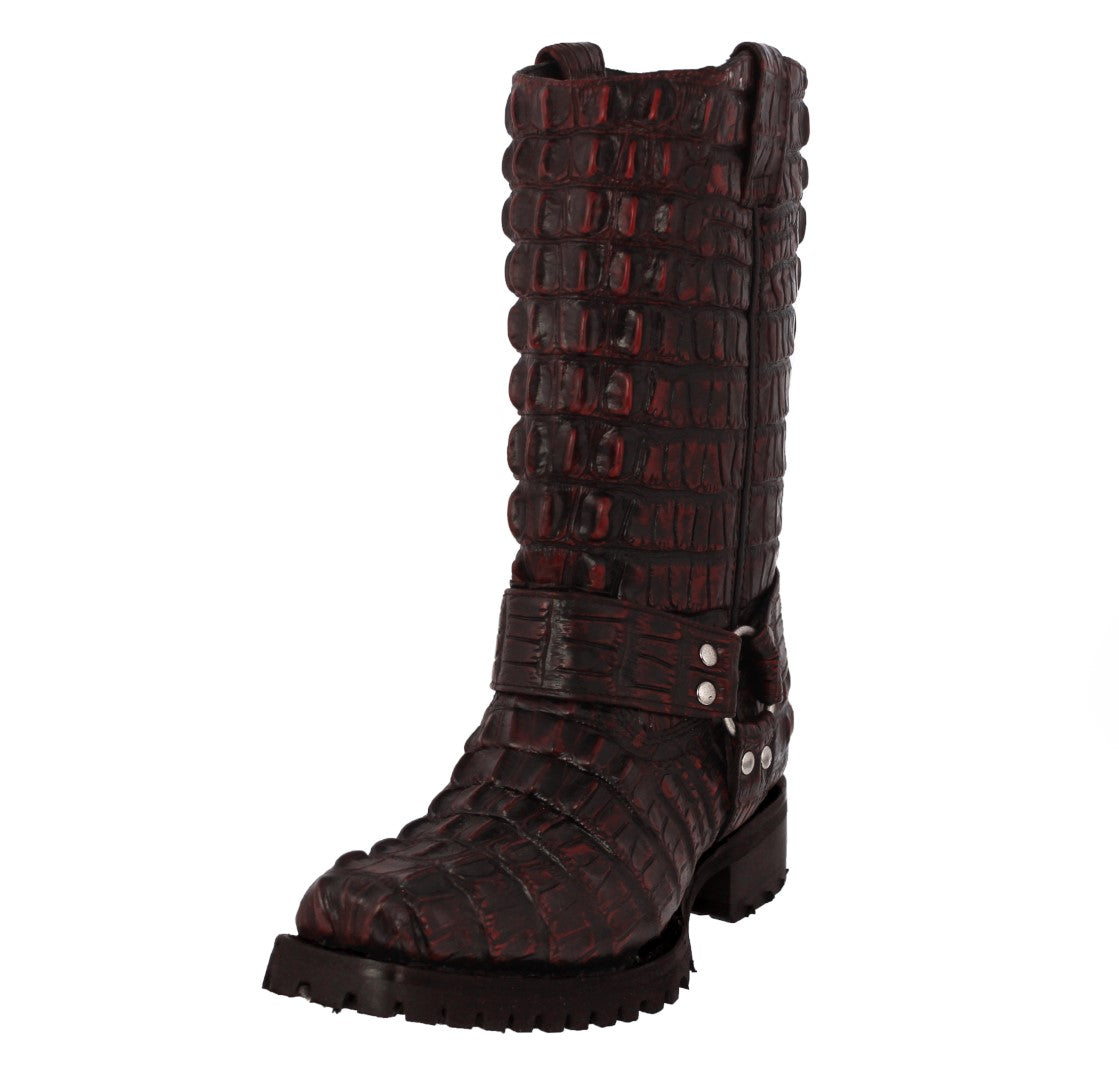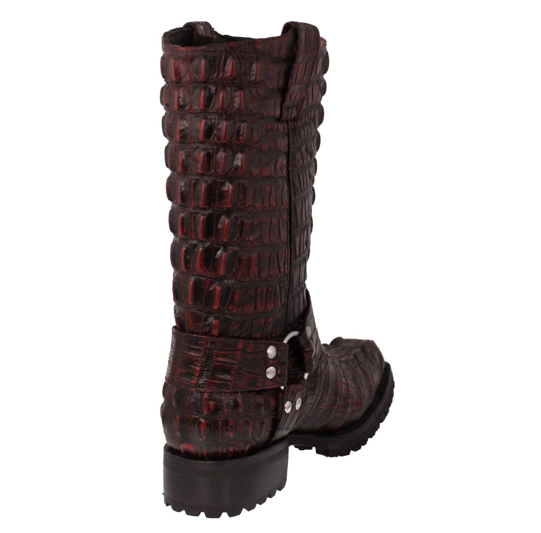 Mens Black Cherry Motorcycle Boots Crocodile Tail Print - Square Toe