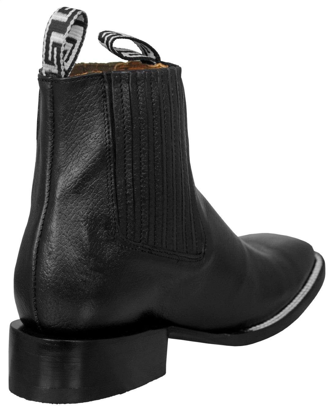Mens Black Chelsea Ankle Boots Leather Pull On - Square Toe