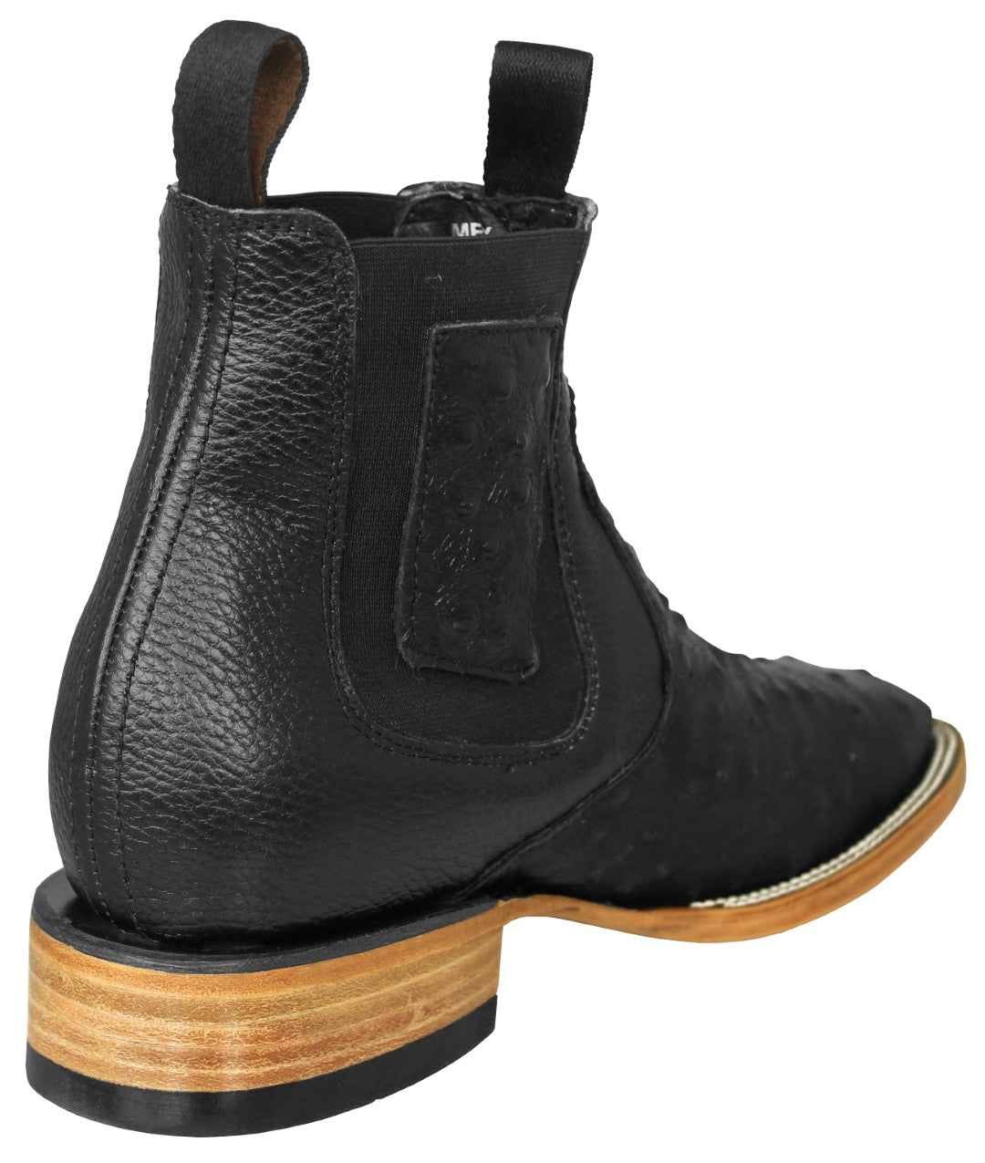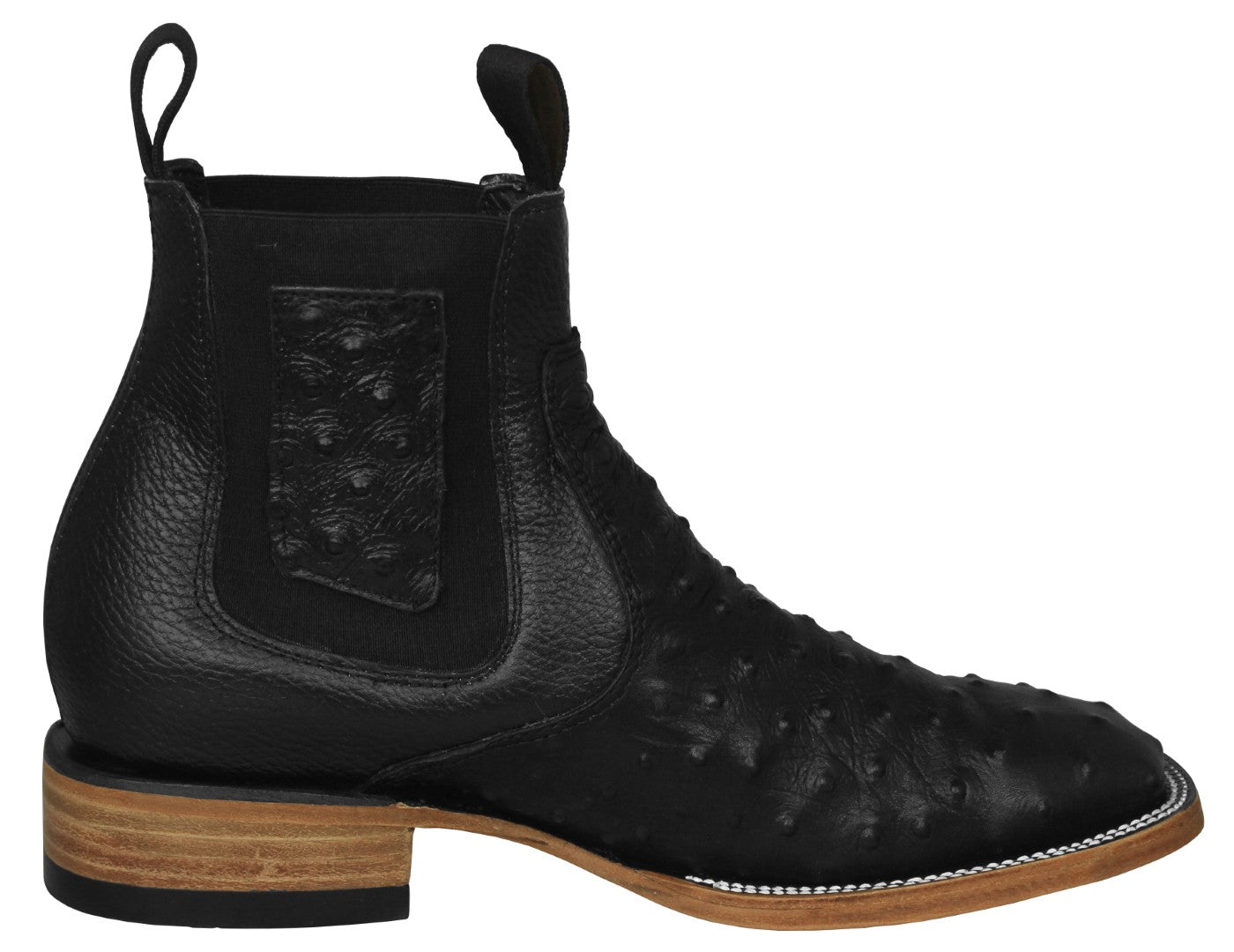 Mens Black Chelsea Boots Ostrich Print Leather - Square Toe