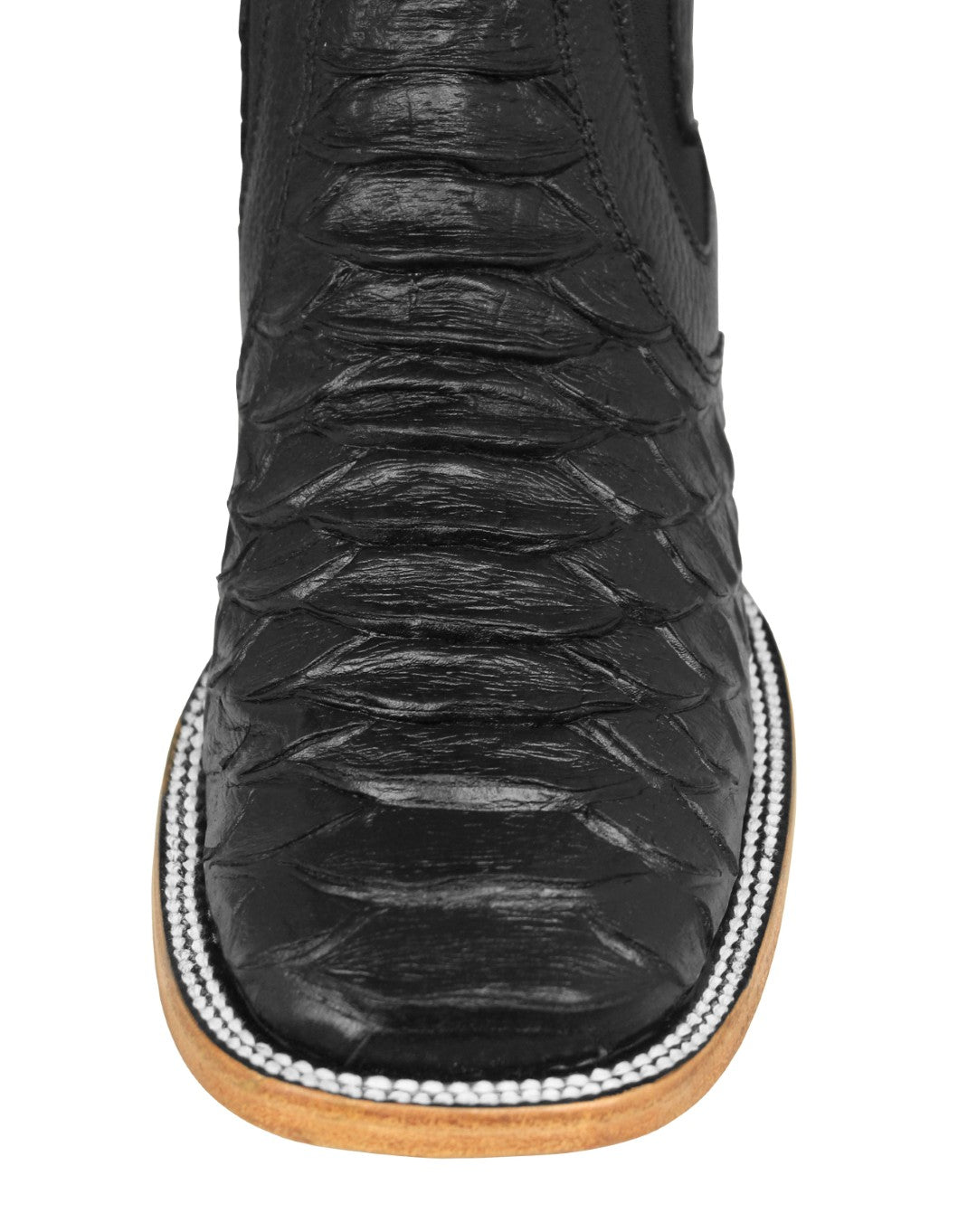 Mens Black Chelsea Boots Snake Print Leather - Square Toe