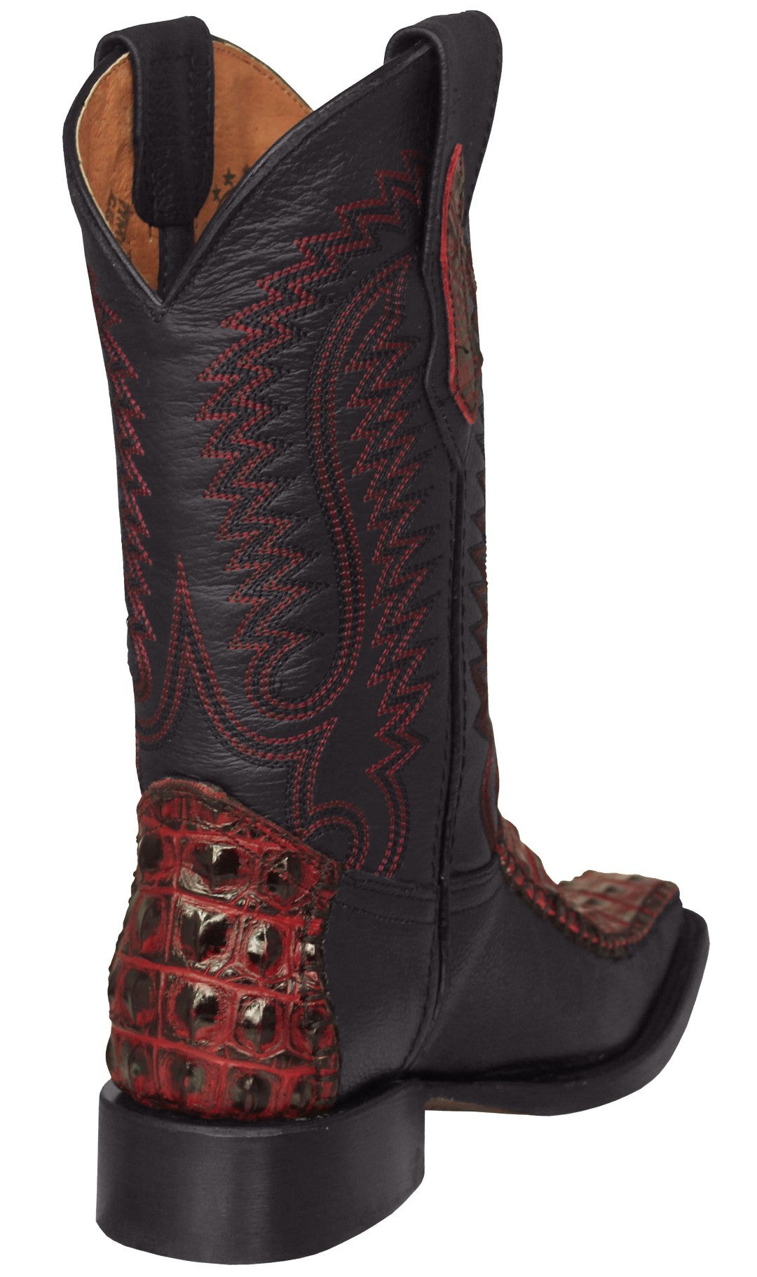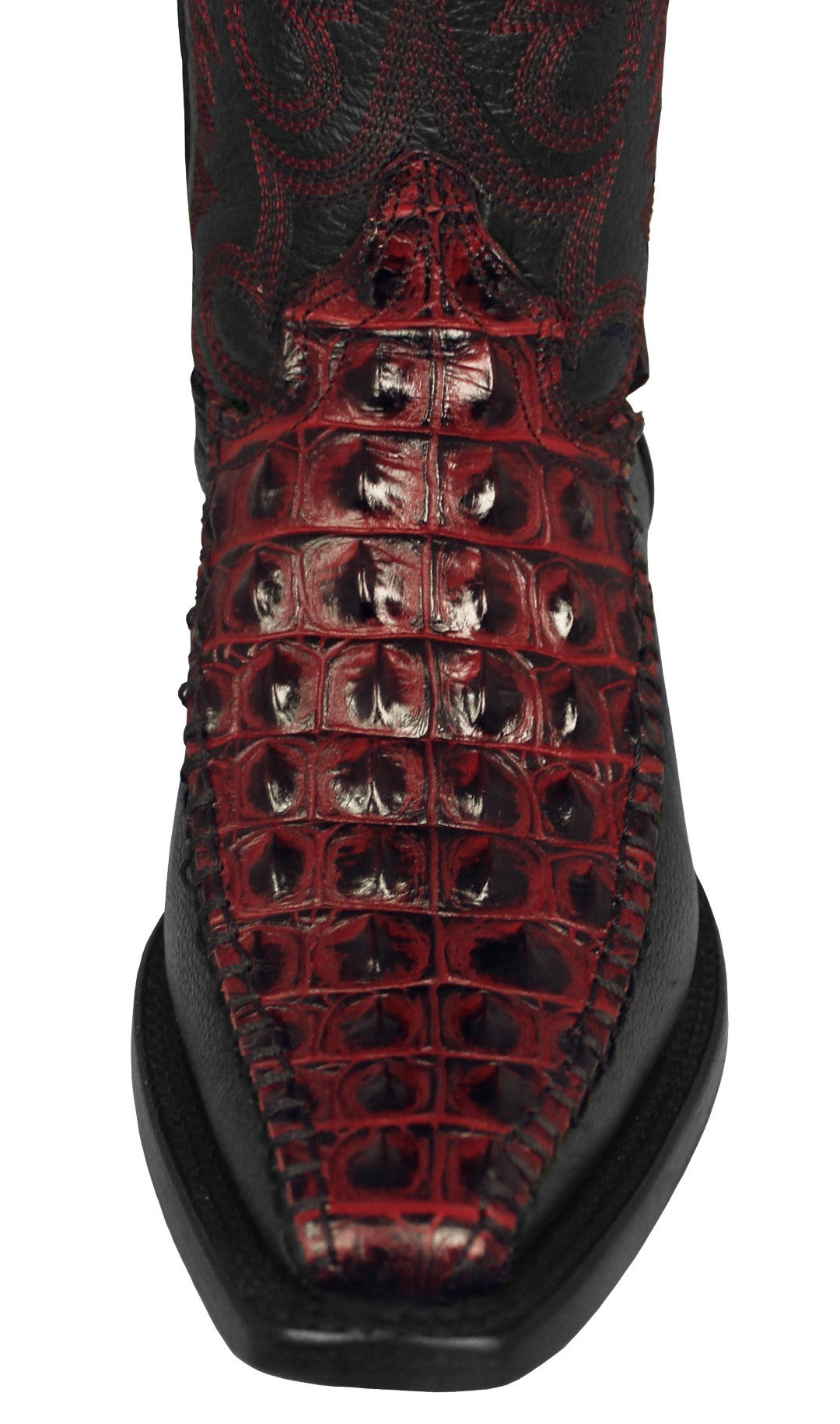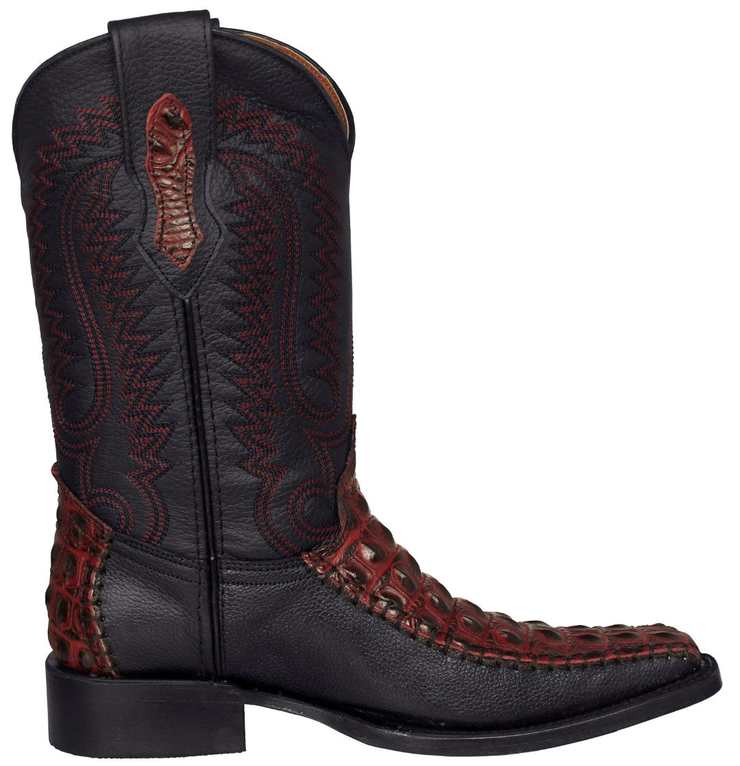 Mens Black Cherry Cowboy Boots Crocodile Back Print Overlay - Square Toe